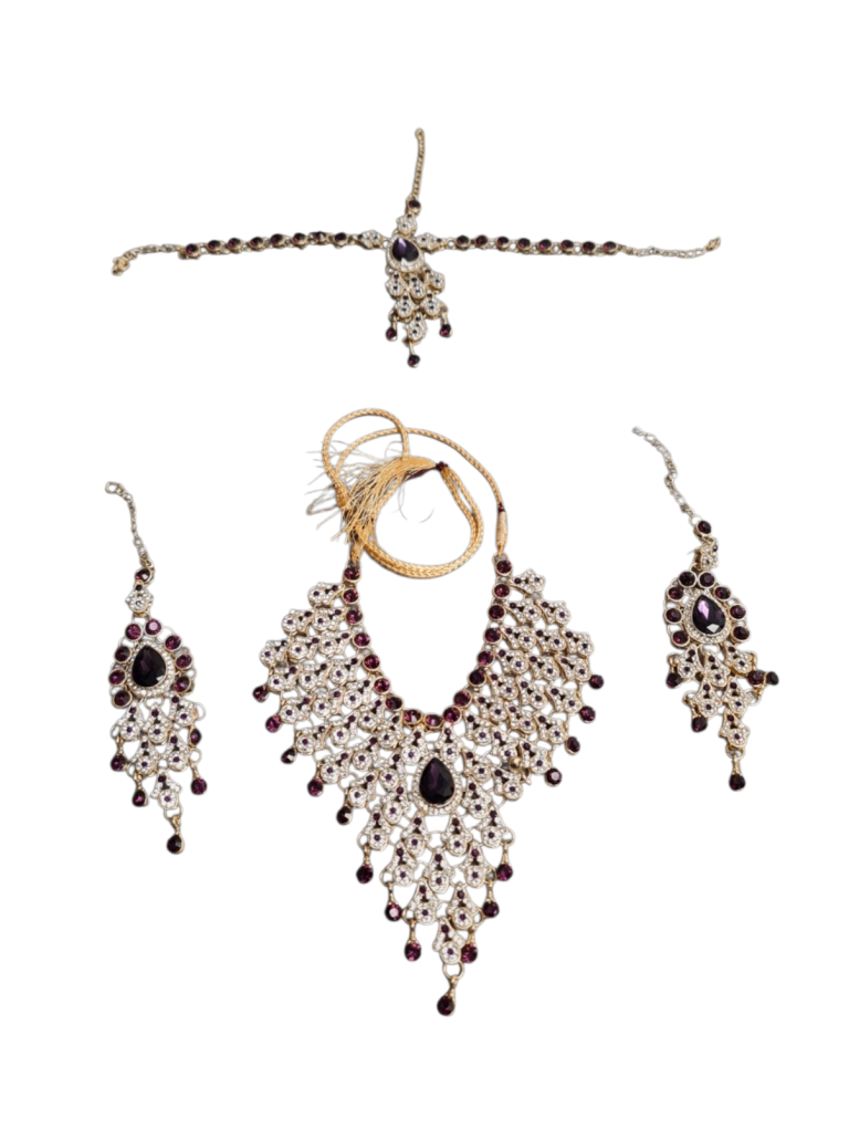 Set 1 - Purple Asian Jewellery Including Headpiece Set