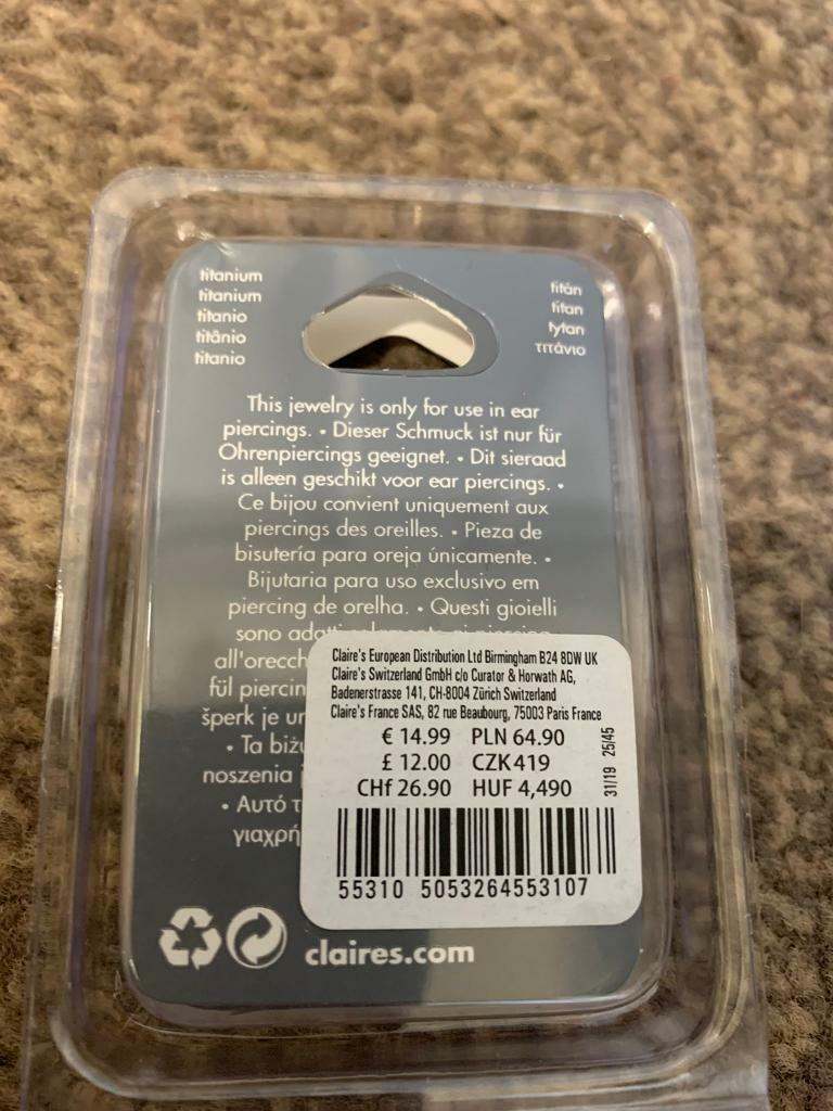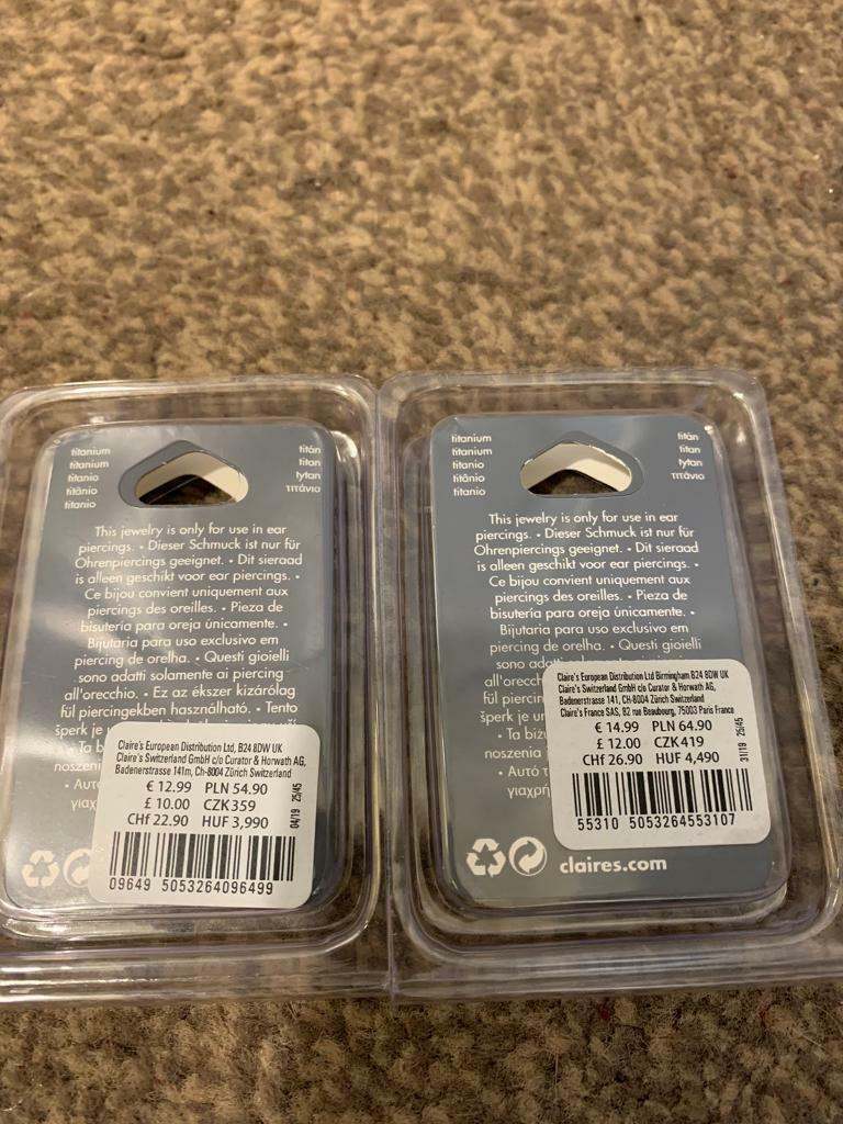 BNIB 2 titanium earrings from Claire’s. BNIB 2 titanium earrings from Claire’s.. Posted by Sheena in Clothes, Footwear & Accessories, Jewellery in Bearsden. 26 June 2020