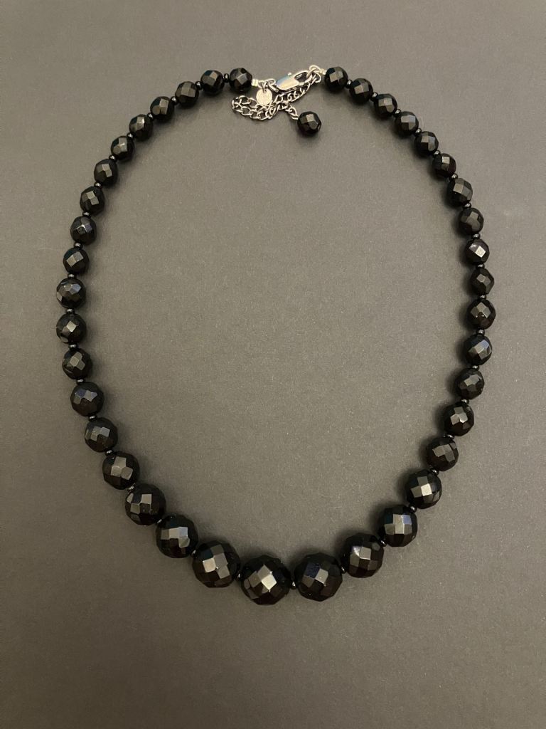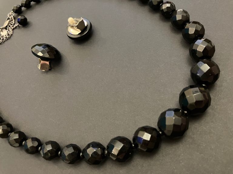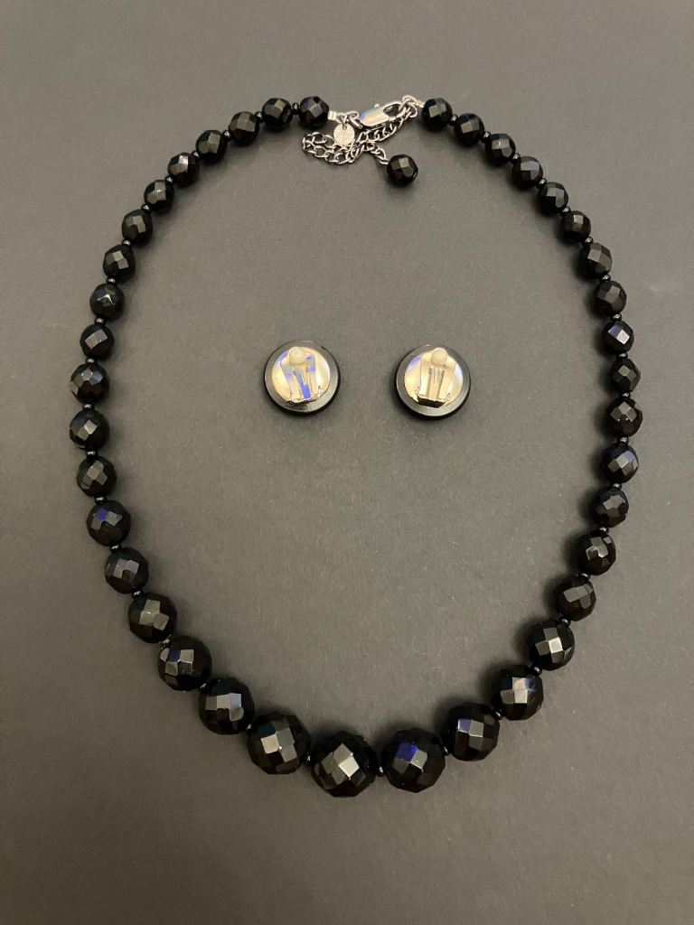 Vintage classic faceted black glass graded necklace from M&S with matching clip earrings.