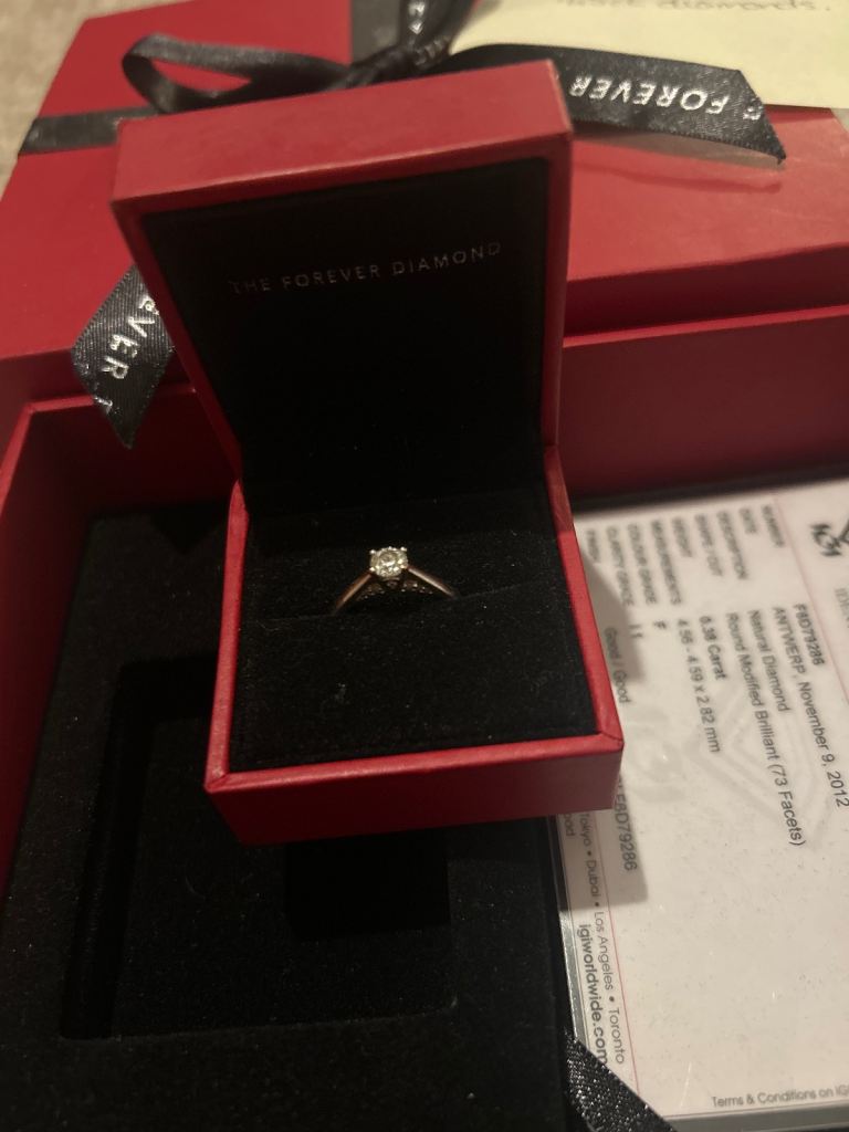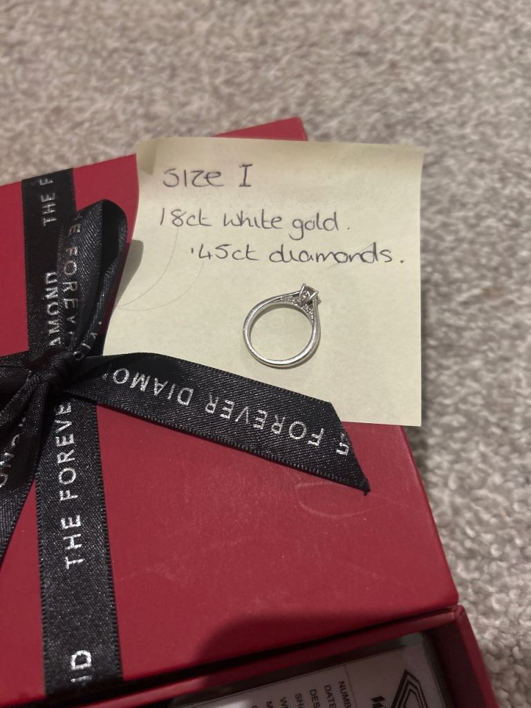 Forever diamonds 18ct white gold engagement ring with round brilliant cut main diamond.
