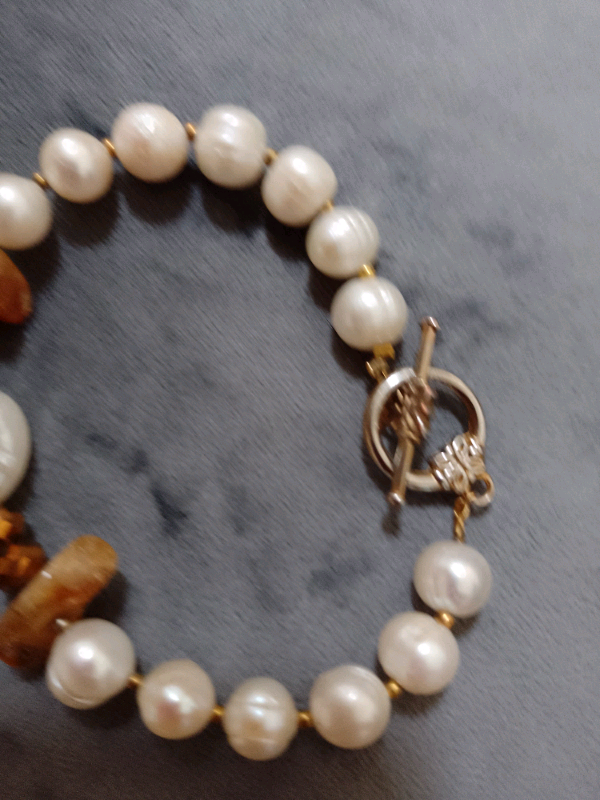 A beautiful baroque pearl bracelet, with a t bar and circular closure, very elegant bracelet. JEWELLERY WITH PEARLS IN FASHION IN 2026
