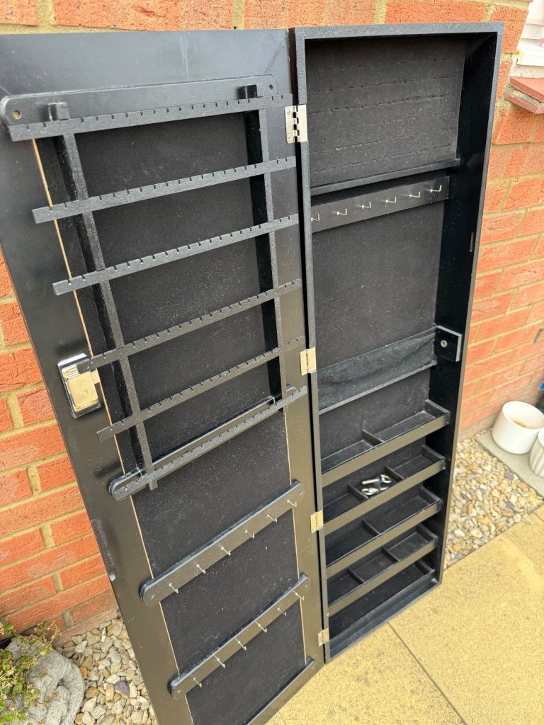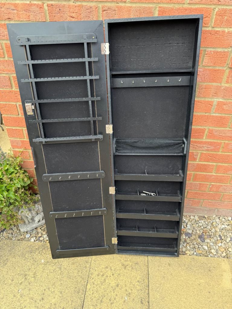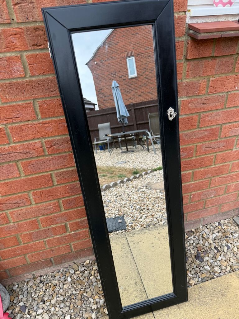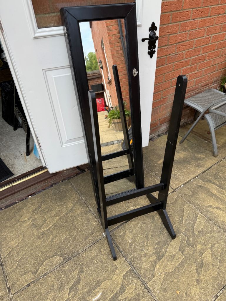 Freestanding jewellery box with mirror, good condition. Collection only from BS22