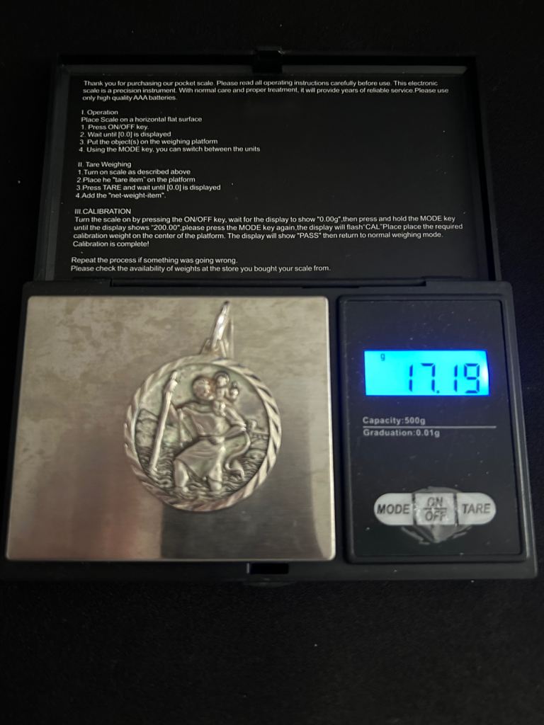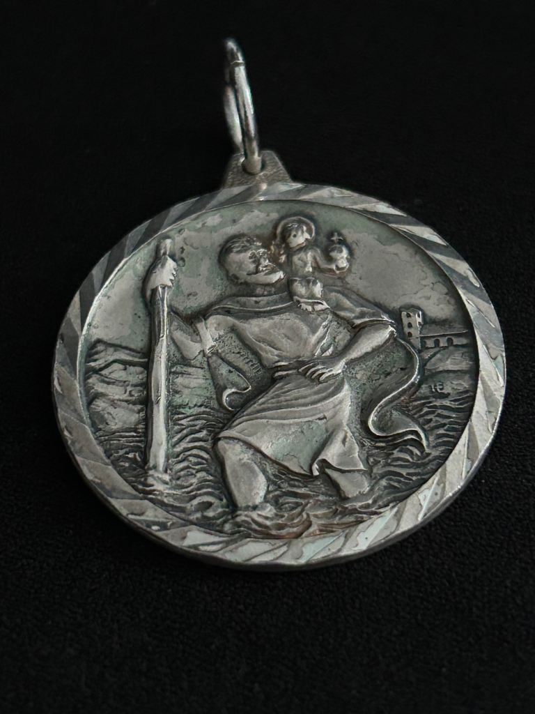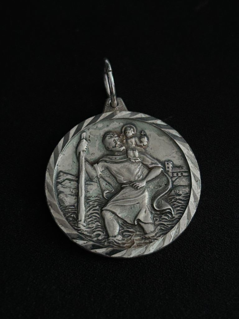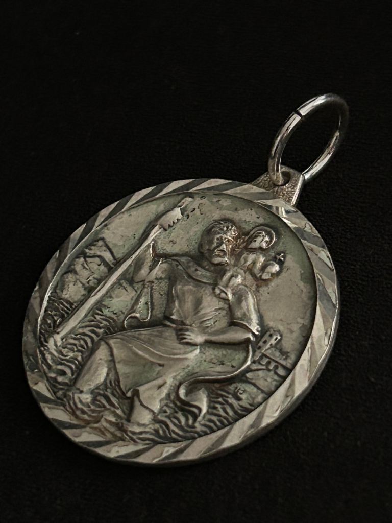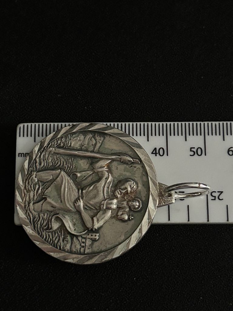 Large Heavy St Christopher Pendant 925 Sterling Solid Silver 2" Inch (5cm) 17.2g