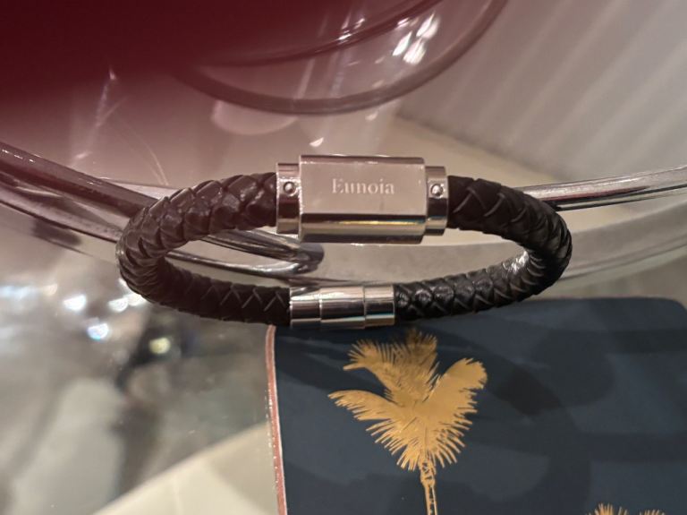 Eunoia. Leather and stainless steel bracelet was left u didn’t know what Eunoia meant but apparently it is “beautiful thinking “.