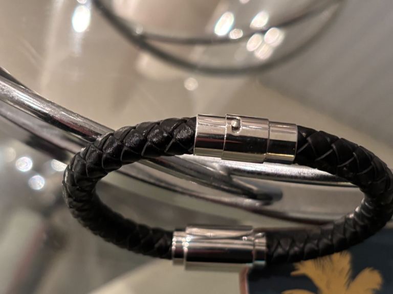 Leather and stainless steel bracelet