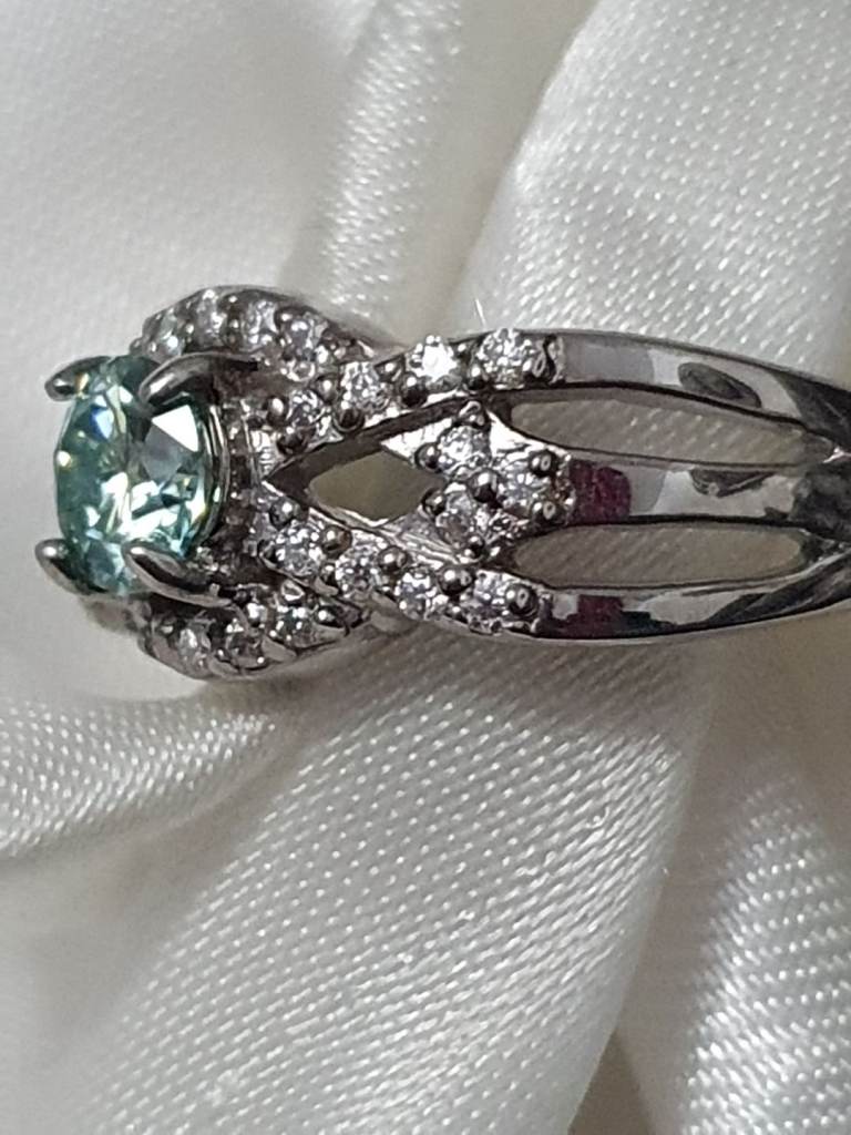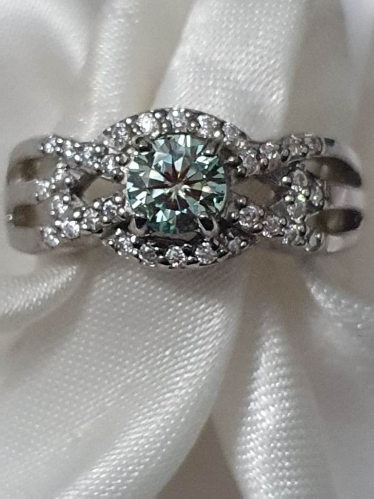 Like A Diamond White Blue Mossanite Ring Size L or P Sterling silver 925 Platinum Overlay New
