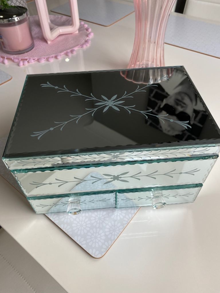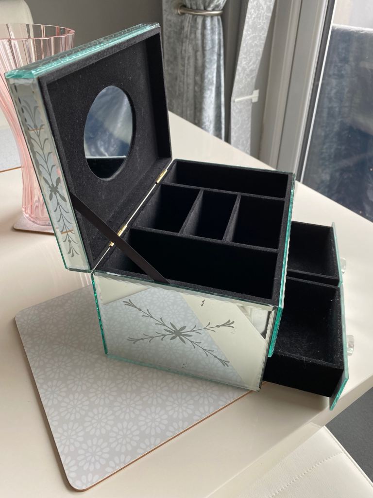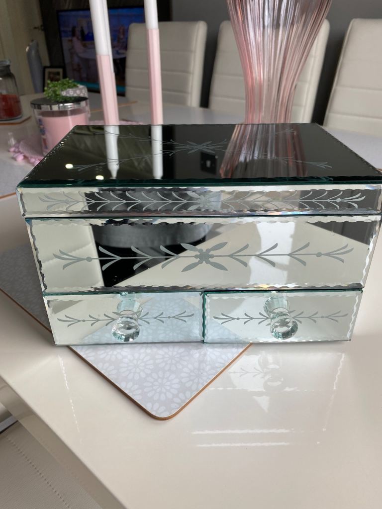 Mirrored glass jewellery box in very good condition- collection anytime after 10 am