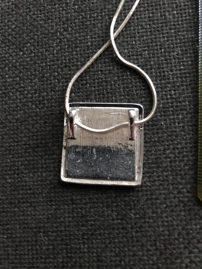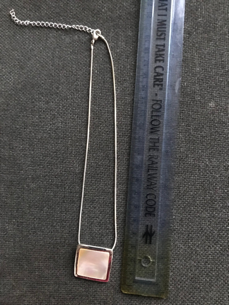 Genuine mother of pearl costume jewellery pendant set in silver effect metal. New and unused.