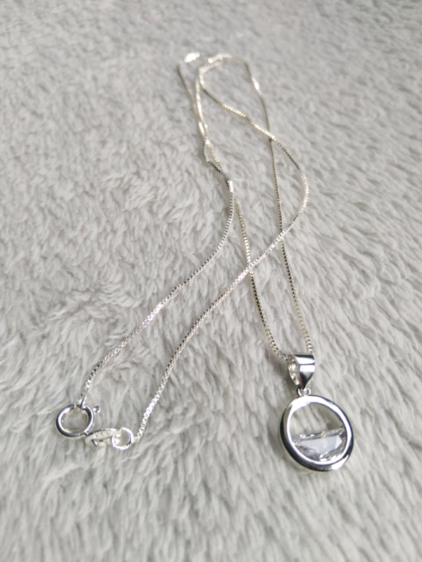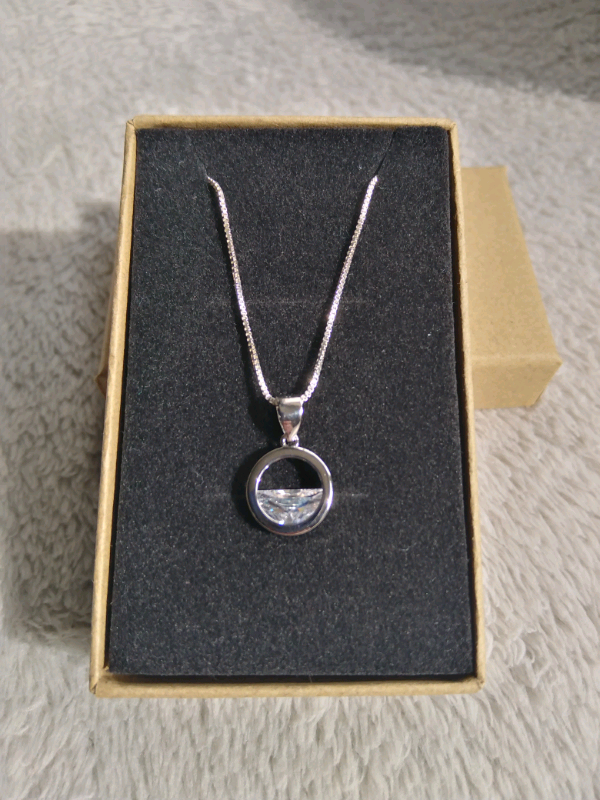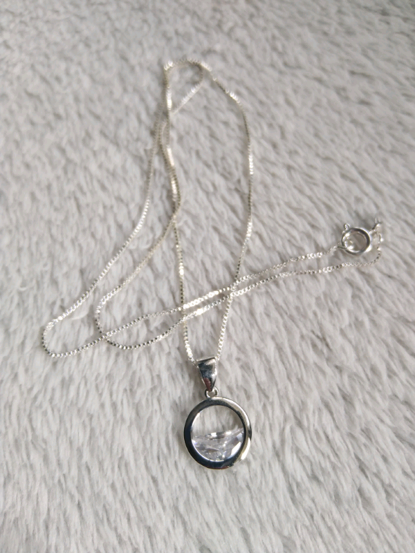 16 inch Sterling silver necklace with 'lake' pendant attached. Nice piece of jewellery that really catches the light. Pendant approx the size of a 5p coin. Both items have 925 mark on them. Ex shop stock so as new condition and unworn. Would make a nice gift! No WhatsApp messages please! £15