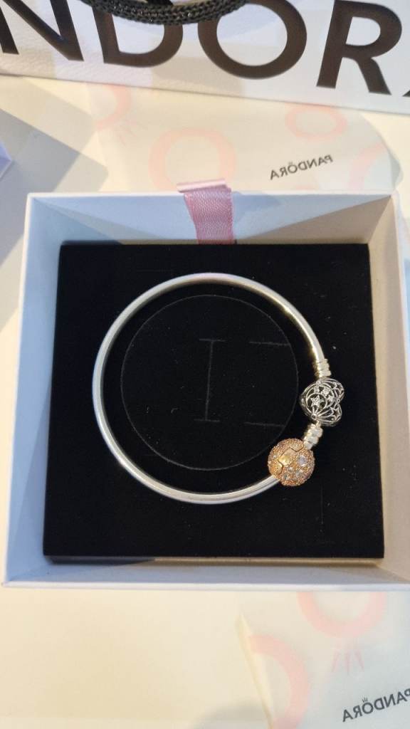 Pandora Celestial Heart Clasp Bangle & Rose gold clasp - with box and carry bag