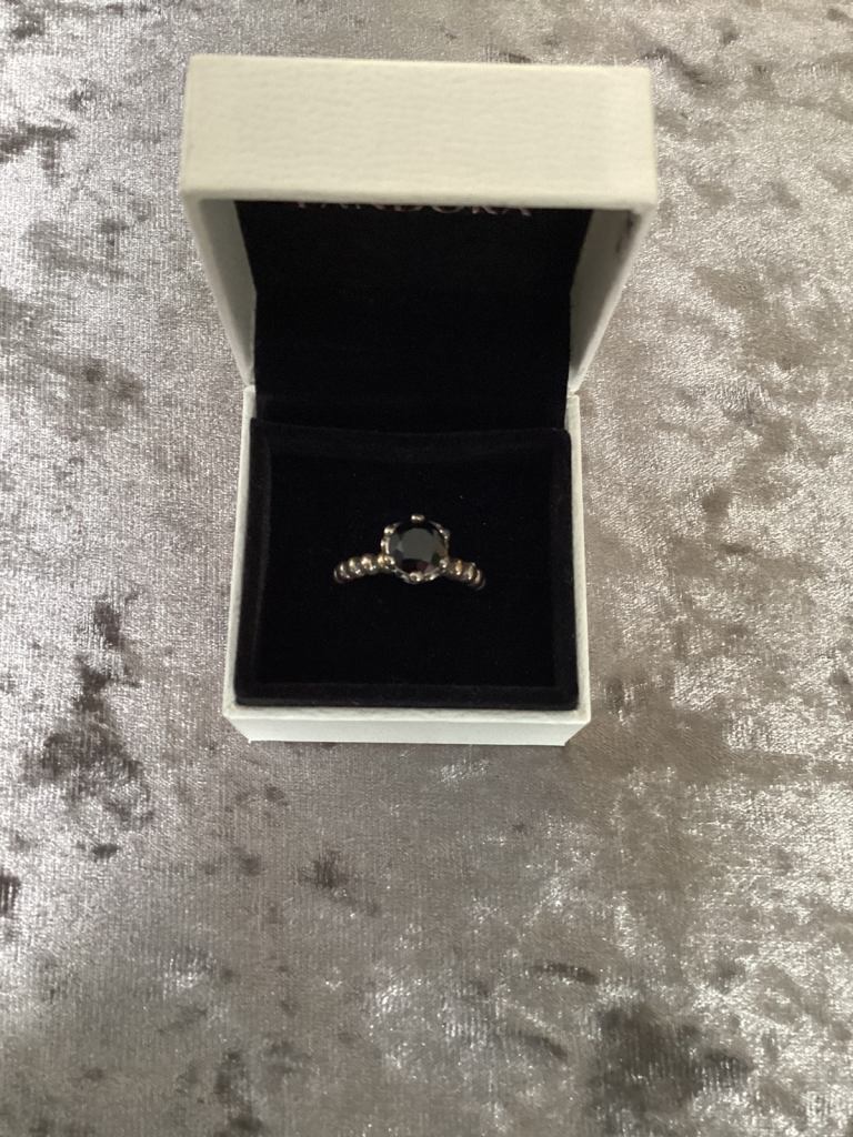For sale a Pandora sterling silver ring marked 925 ALE 58 in original box. It is unmarked and