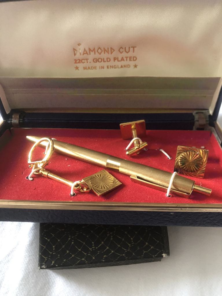 Gold plated Pen, cuff links and key ring set lovely condition make a grand present