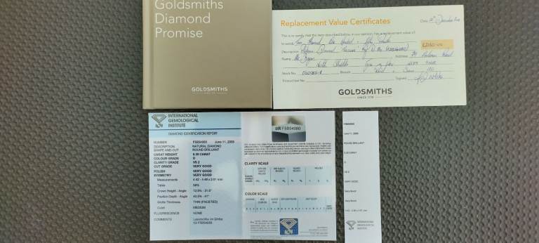 Diamond Identification Report and Replacement Value Certificate included