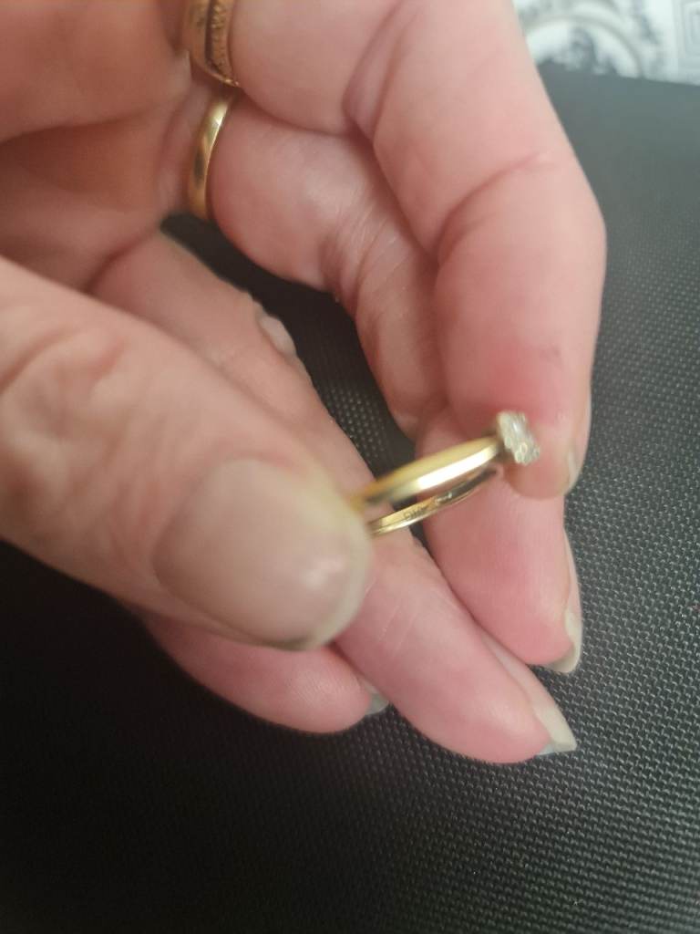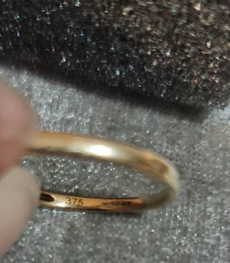Lovely ring hallmarked 375 an also stamped DIA inside the ring, 20mm width not sure on the size as I can't rambert so measured in mm, beautiful ring for someone last min xmas gift , £400 it was brand new , but its prowled so looking for £100 ono, sensible offers only please , I don't have original box due to my wearing it at the time an iv moved twice since but I do have a nice box for it to be in,