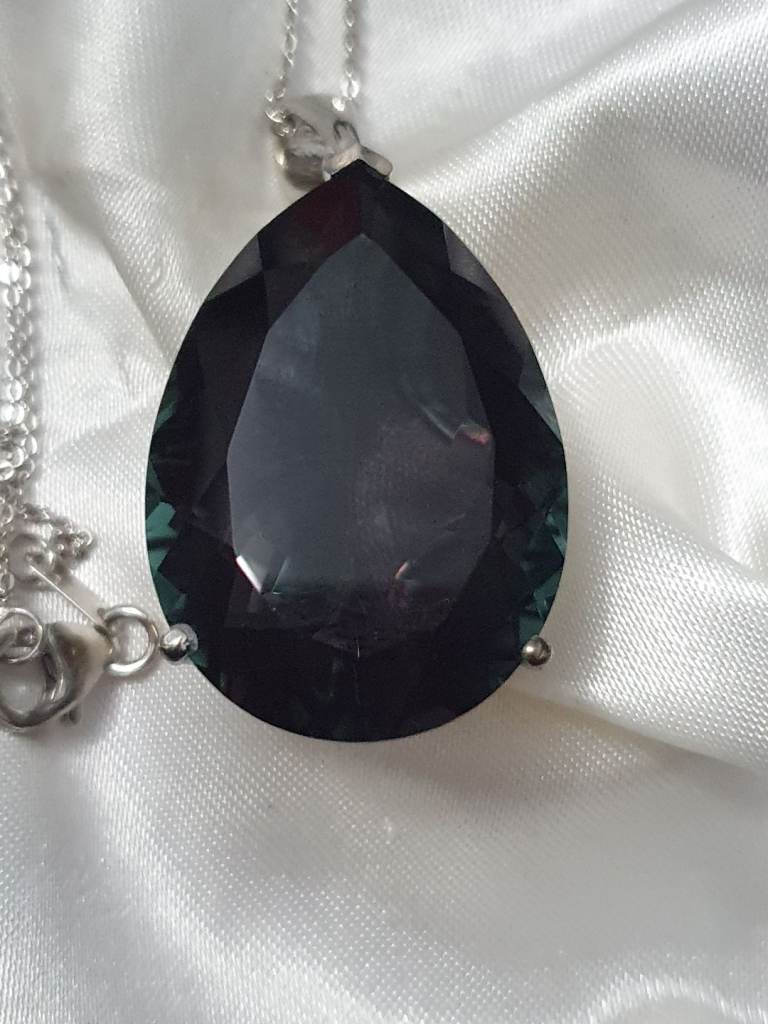 Rare Silver & Pewter diamond cut unicorn with rainbow crystal ball necklace