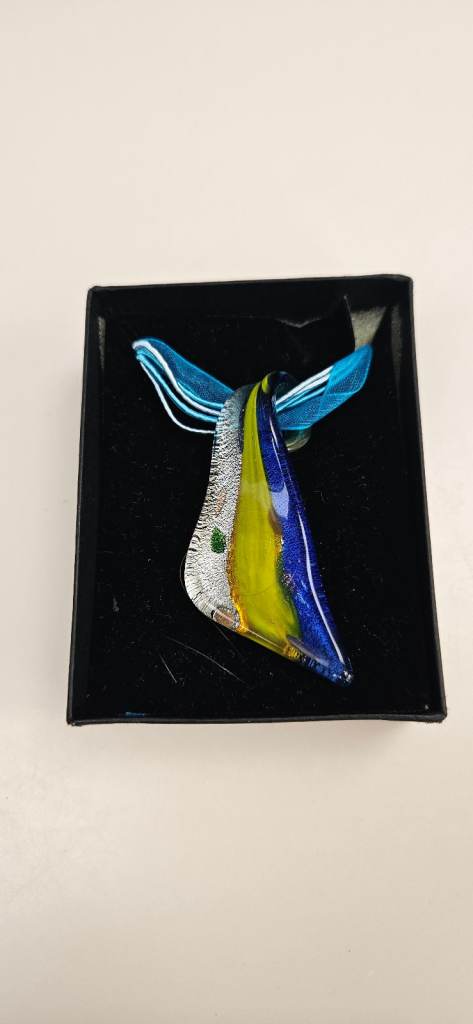 Artisanally created from a blend of pewter and silver, behold this captivating unicorn with a crystal ball necklace. The diamond-cut pewter intricately adds enchanting silver highlights to the unicorn. Adorned with a faceted mystical crystal ball reflecting the colors of the rainbow, this unicorn pendant exudes true magic. The back features the inscription "Fable" and the copyright mark. Suspended from a 24-inch chain with a secure spring clasp, this necklace is a whimsical accessory to treasure.