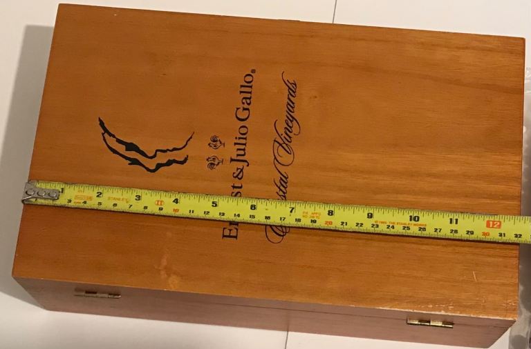 The lovely box is only 3-5 years old, and is originally a presentation box for 2 bottles of wine, and can be used as a very pretty and useful jewellery box.