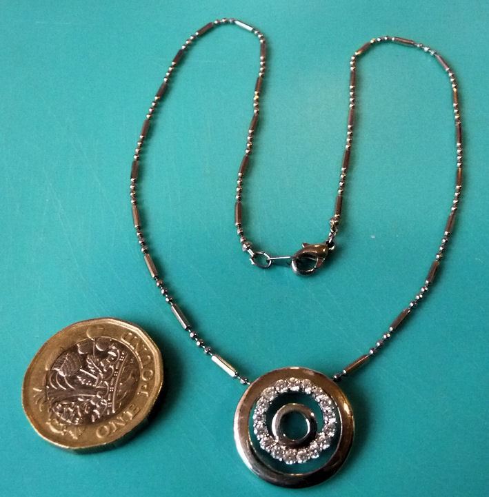 Lobster claw fastener.. Coin is only shown to compare size of pendant..
