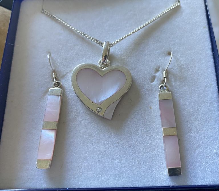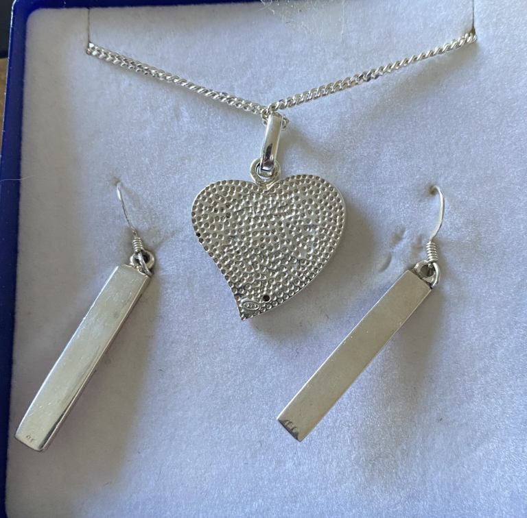 Sterling silver necklace and earring set, hallmarked 925, total length of the necklace is 16”, brand new.