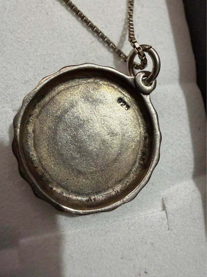 Sterling silver pendant with sterling silver chain. Used but in excellent condition.