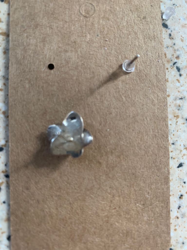 Hallmarked silver. They are very detailed with an intricate design. Original backs have been replaced with rubber backs.