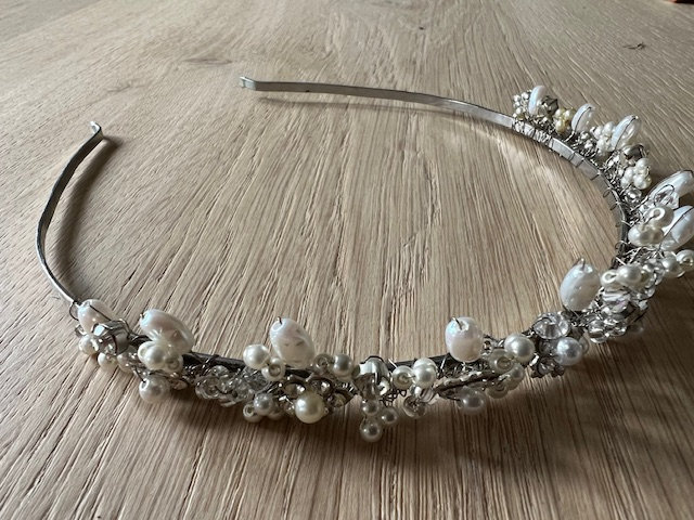 Classic bridal headwear - an exquisite pearl and crystal tiara. Embellished with ivory pearl sprigs set on petite diamante daisy accents on a low-profile design, this easy-to wear piece is guaranteed to make a stylish bridal addition to your special day.