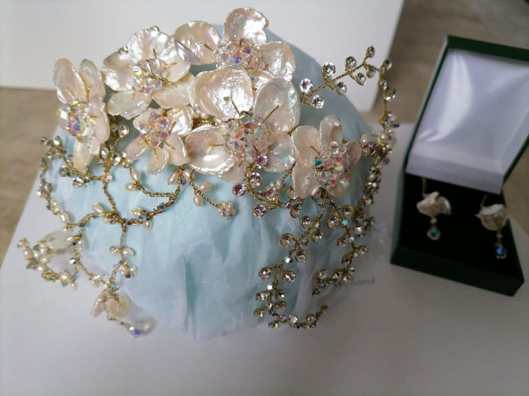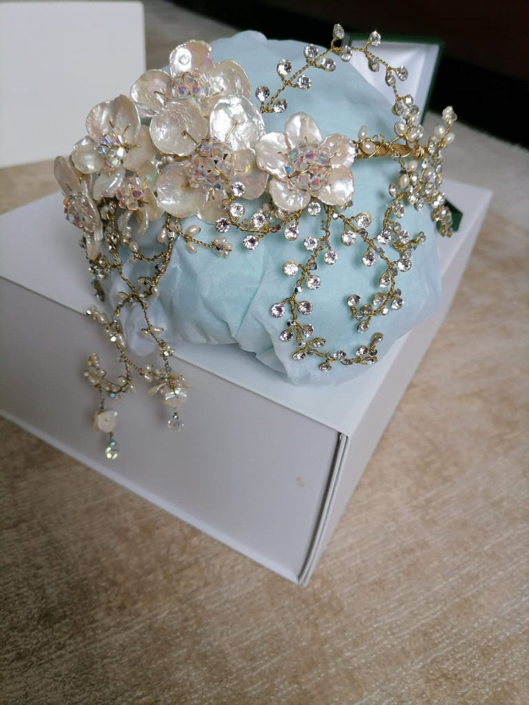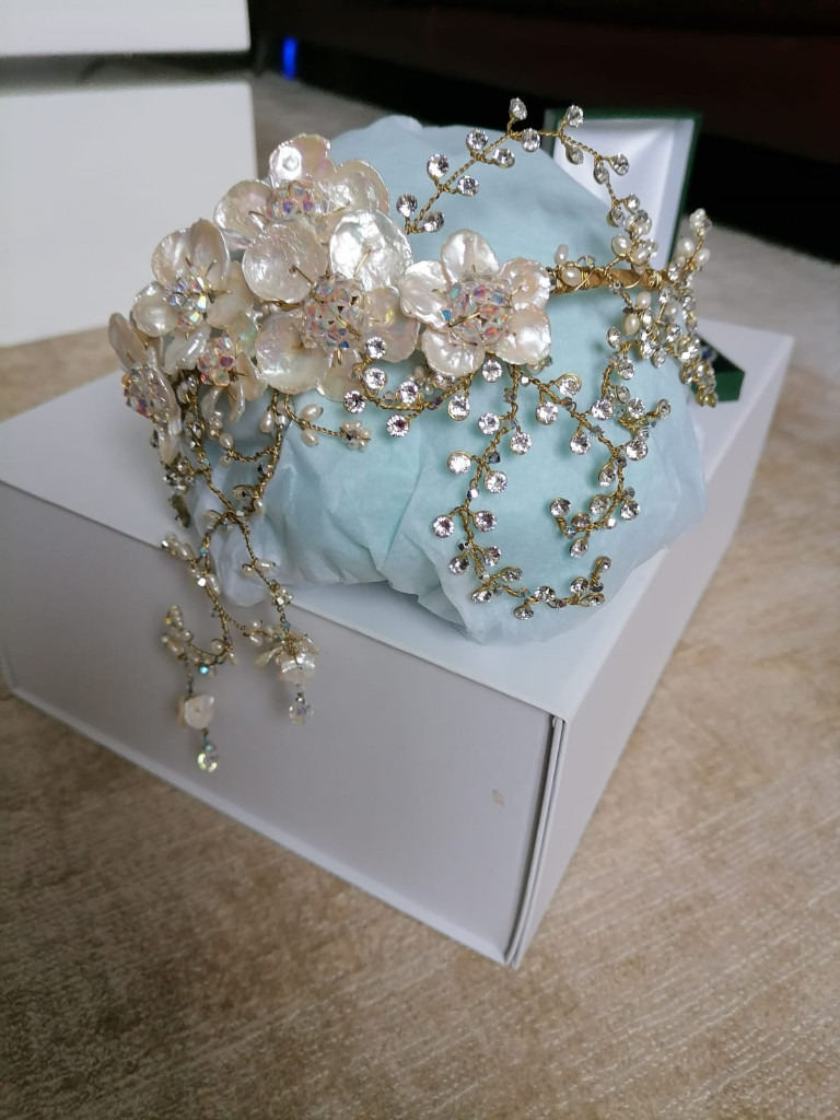 Posting for 12+ yearsSwarovski crystals, Pearl & Pearl Shell headband+e