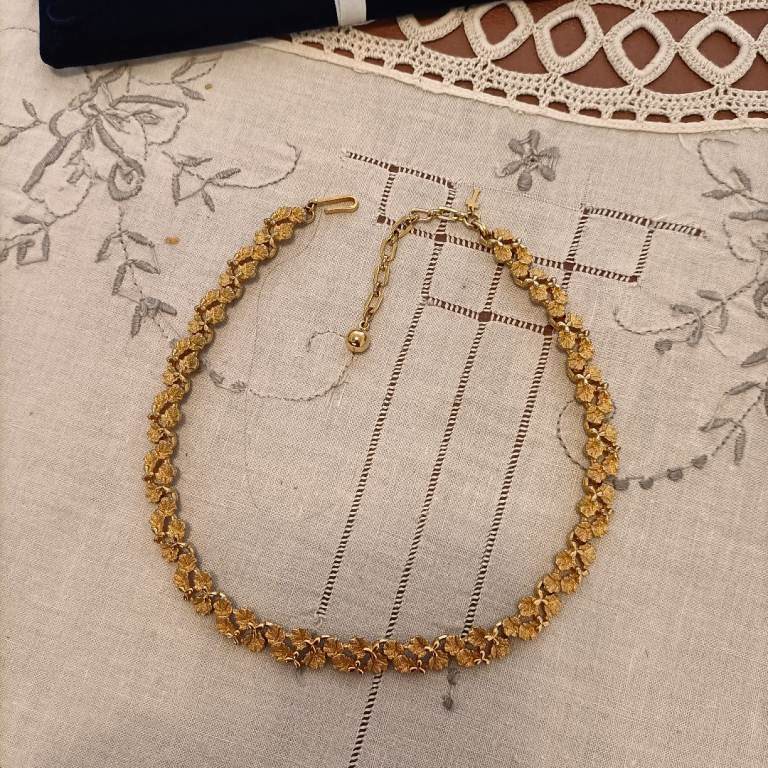 Trifari vintage gold tone choker necklace, in excellent condition. 13-15 inches. Leaf design.