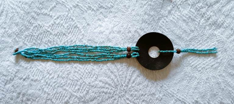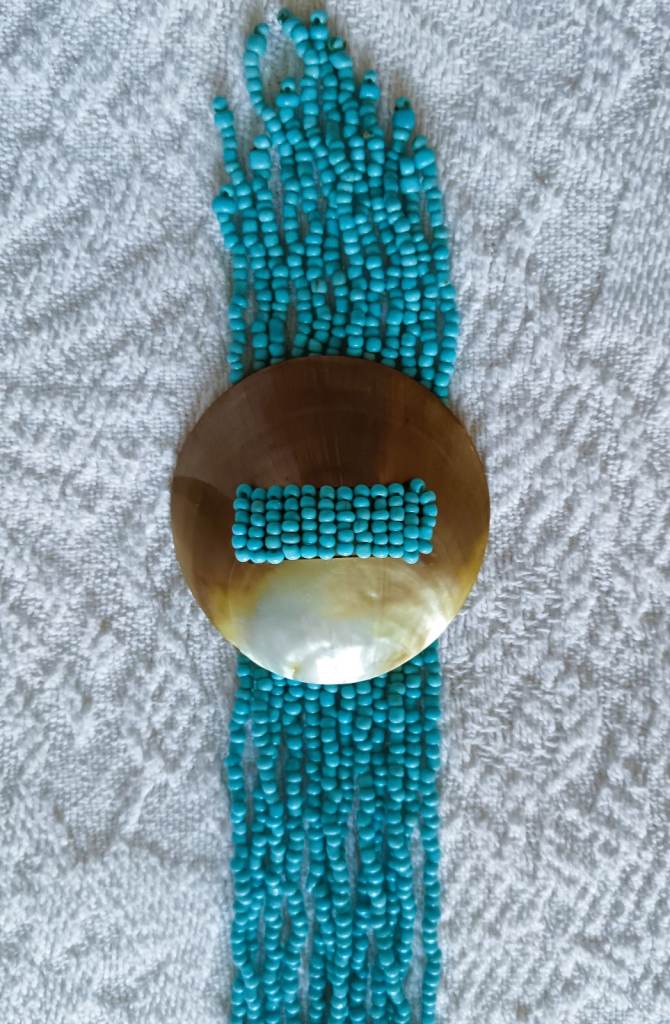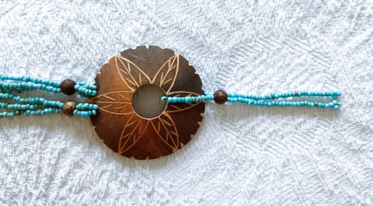 Turquoise Necklace Shell Beeds Wood engraved 3 Piece Set Hand Crafted Bespoke Made Items