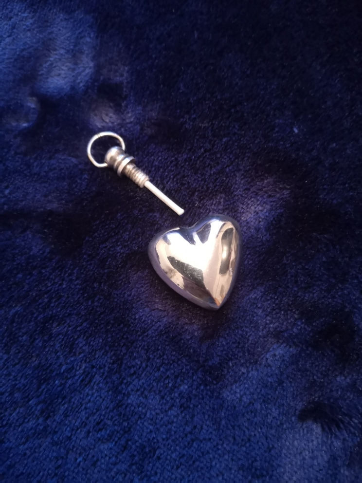 very unique heart shape silver perfume pendant. has good size to it,