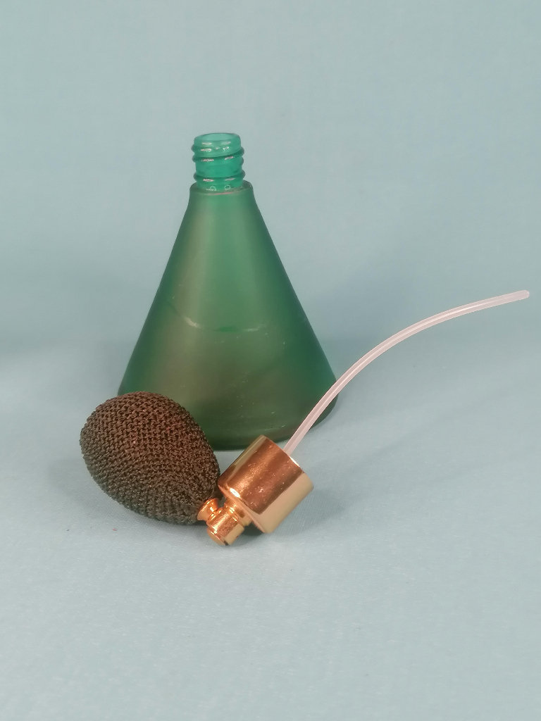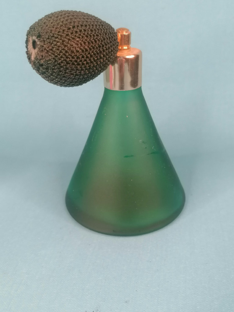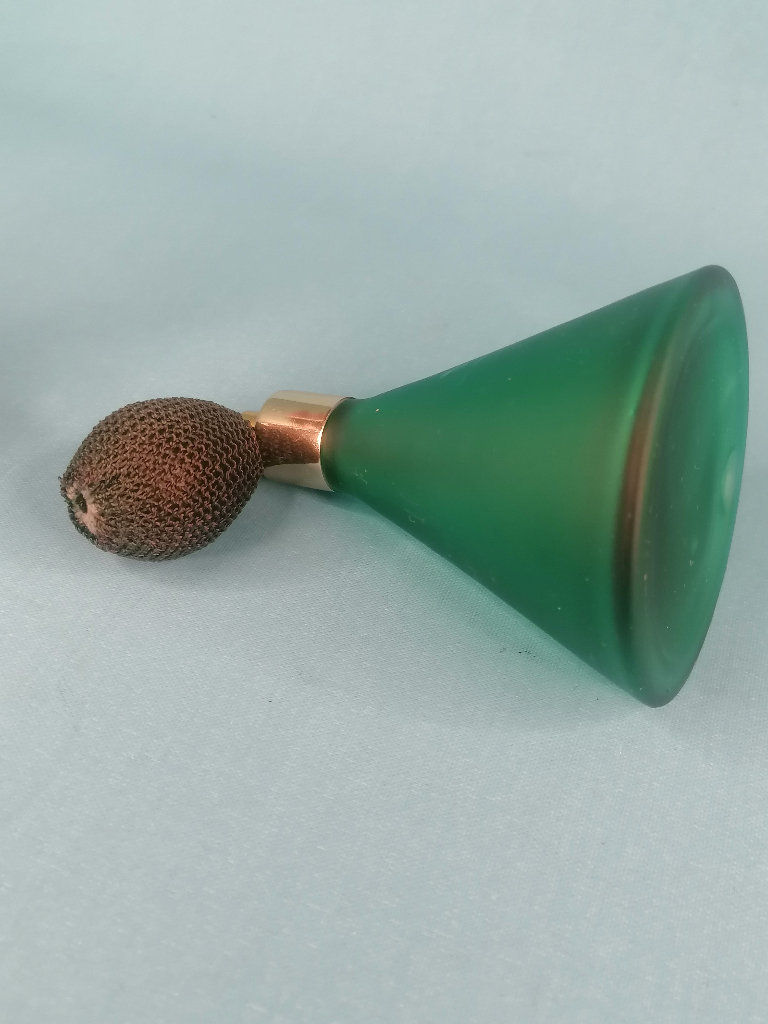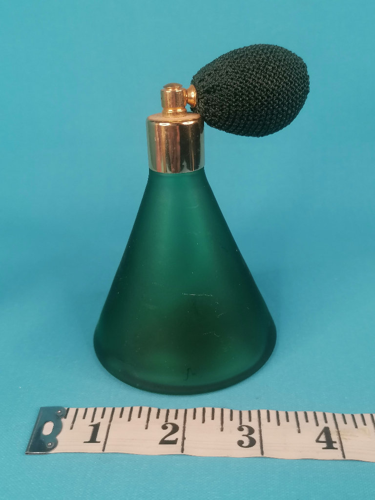 Vintage,2-inch Tall Beautiful Vintage Art Deco Frosted Green Perfume Atomizer Bottle. As seen..
