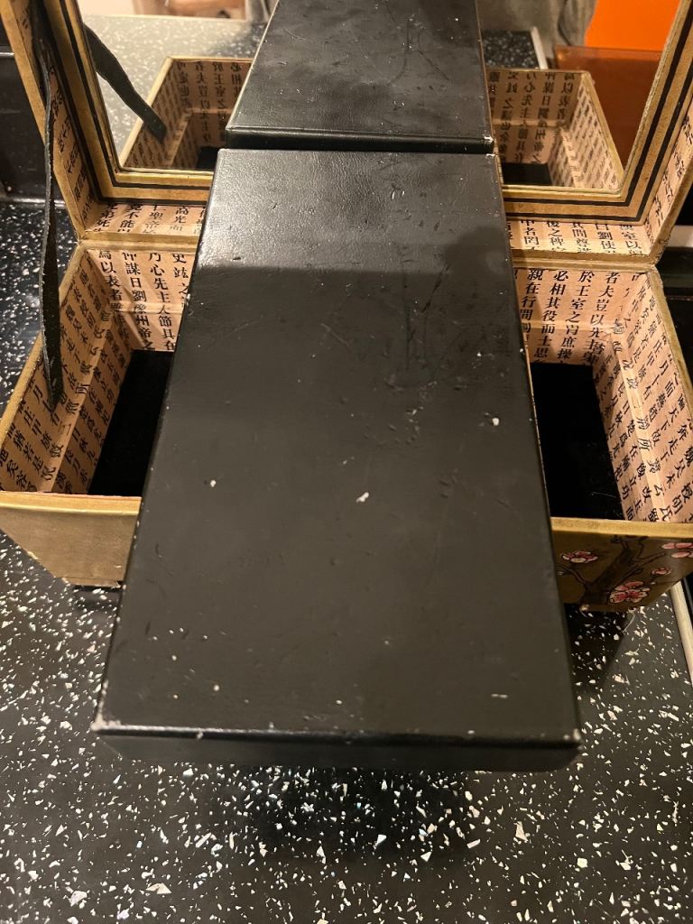 Vintage cardboard oriental style dual layer jewellery box