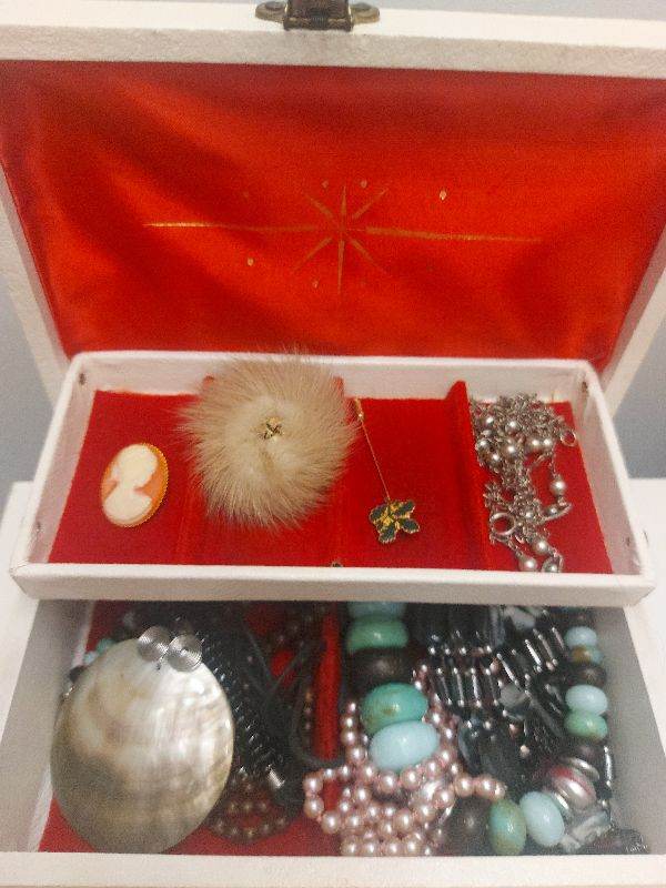 VINTAGE MIXED COSTUME JEWELLERY WITH VINTAGE Lot BOX Included Vintage Jewellery Box