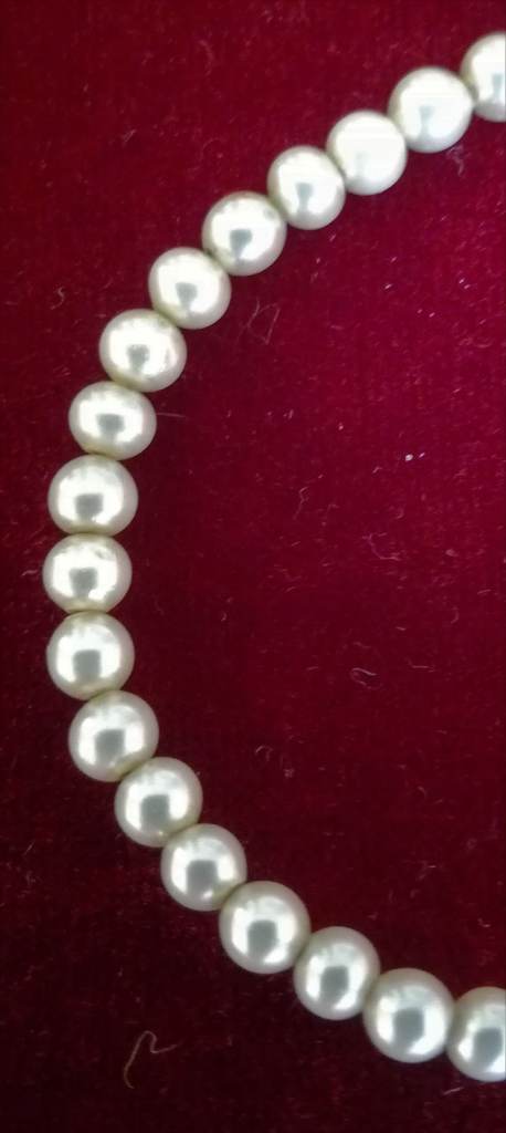 VINTAGE dainty decorative tapered pearl stone necklace with a painted female portrait pendant. The portrait is sealed by a convex curved glass material which has been delicately surrounded by smaller pearl type stones and ornate lattice filigree silver coloured metal work. The pendant is attached onto the necklace by a single shaped filigree loop. The silver filigree metal work appears to have two stamped markings on an oval shaped disc on the reverse of the pendant, at the base and also on the clasp. The necklace stones are complete, tapered in size, graduating smaller to the clasp mechanism. It is a very unusual ornate piece. The measurements of the pendant is quoted in cms: Height: 3 ½, Width: 3. Necklace (flat): 23, one side and 21 on the opposite string secured by the clasp. I have no details concerning the piece, it is an item that belonged to a relative. Therefore, I can not confirm the age or materials it is made from fully. *I can arrange 2nd class postage recorded delivery if required.
