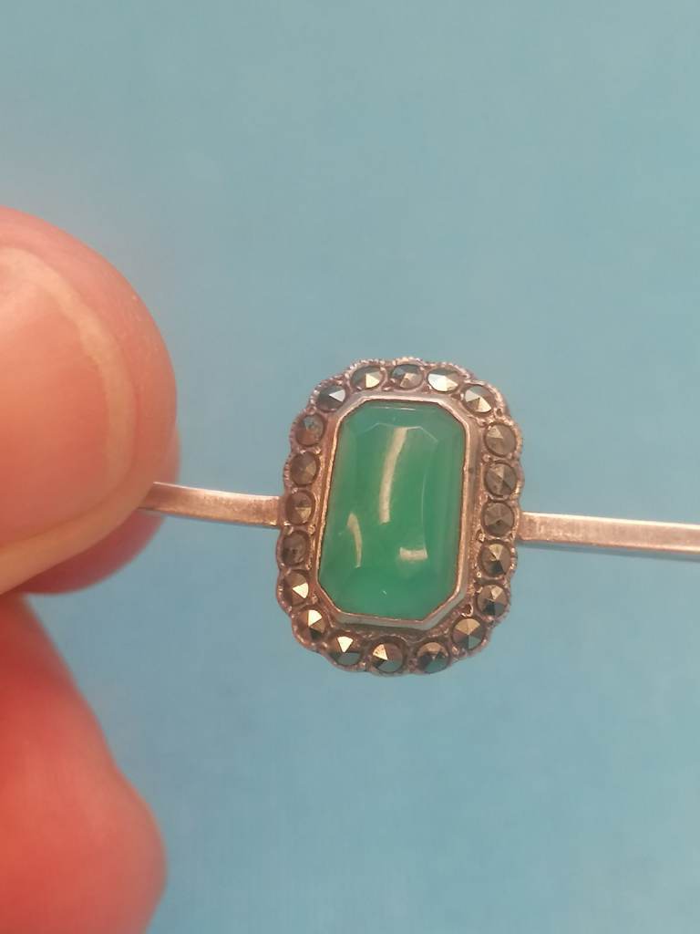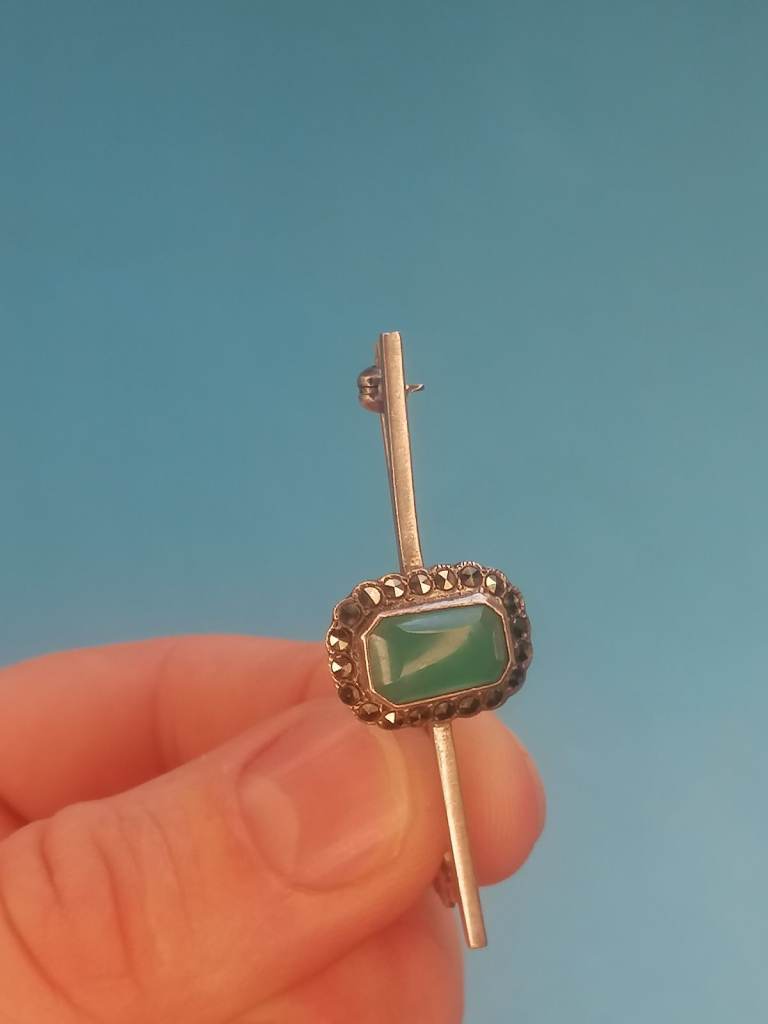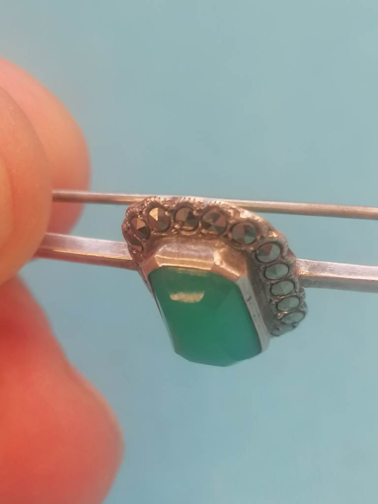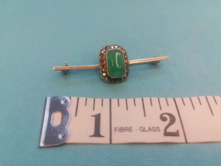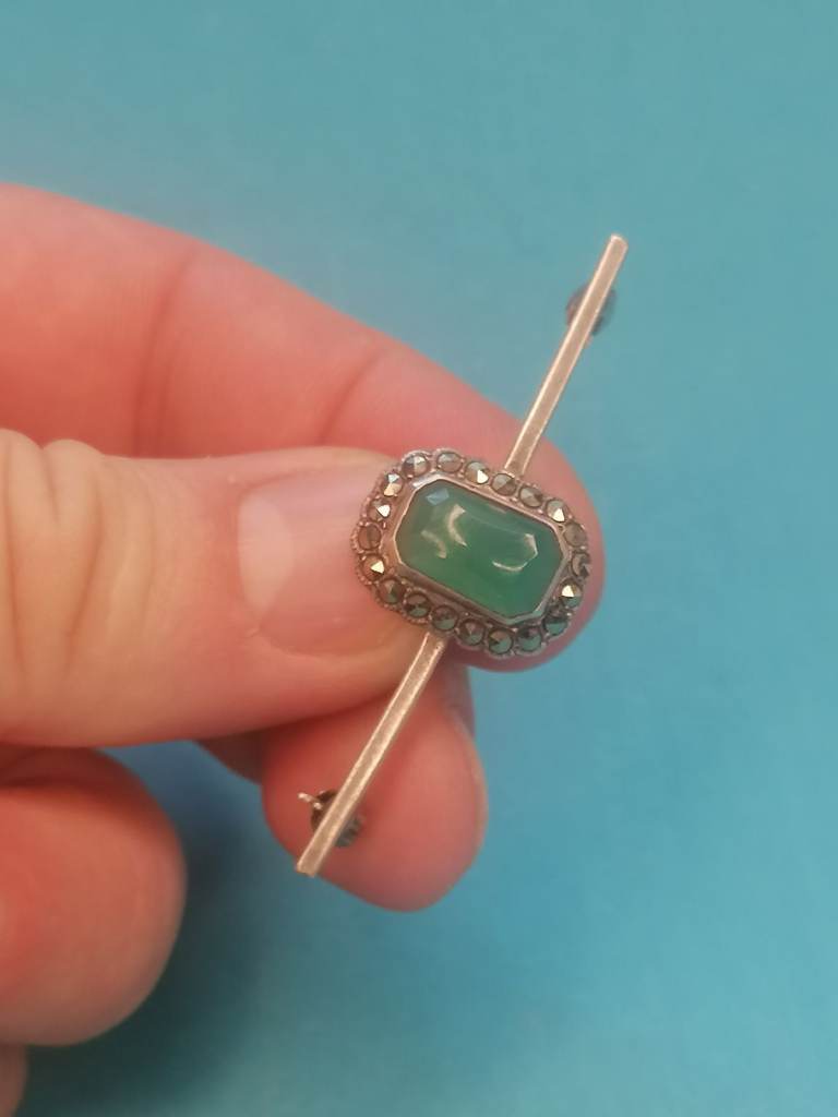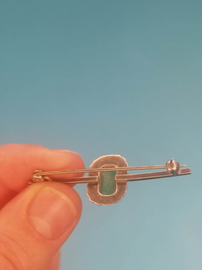 Vintage Sterling Silver 925 - Brooch With Jade Inside.. As seen.