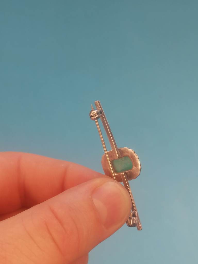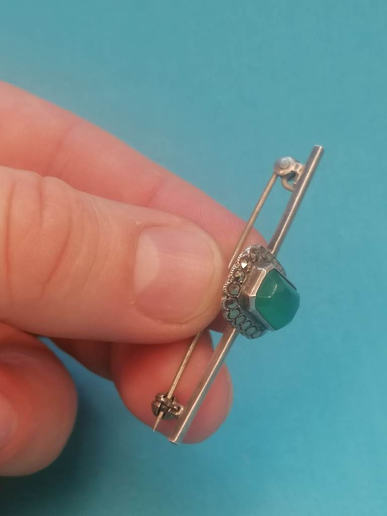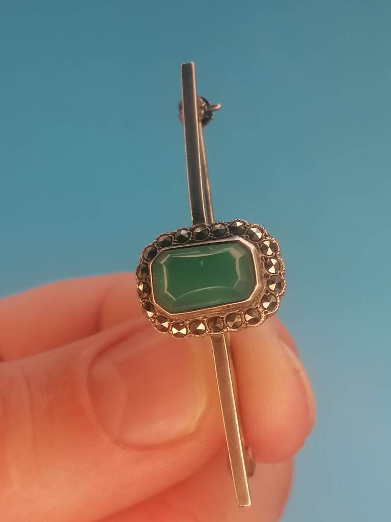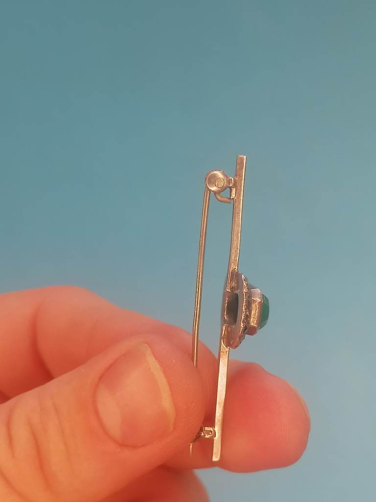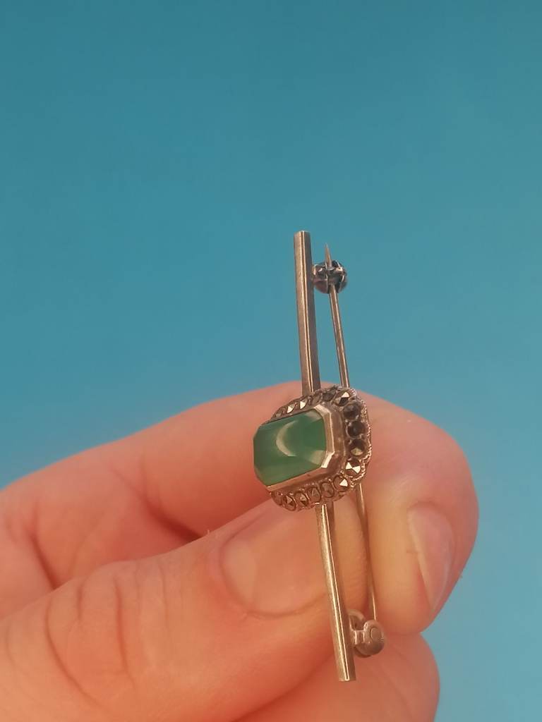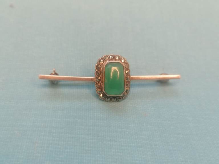 Vintage Sterling Silver 925 - Brooch With Jade Inside.. As seen.