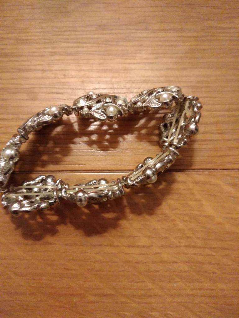 Vintage style silver coloured bracelet with sparkly faux petal and diamond with floral pattern. Would be ideal for Christmas