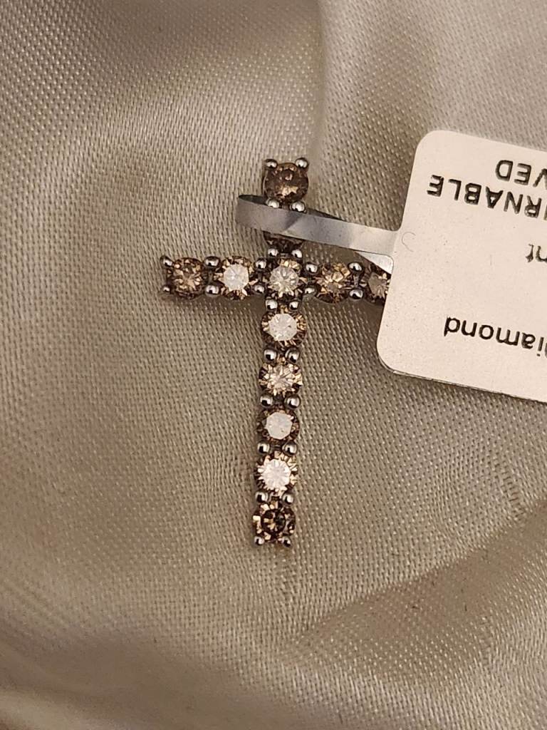 NEW 9ct Gold Diamond White Gold Cross champagne Diamonds Cross brand new