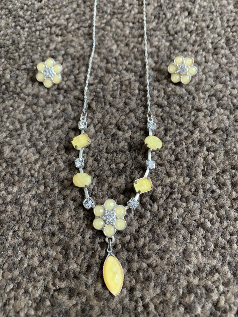 Yellow stone/diamanté necklace earring set