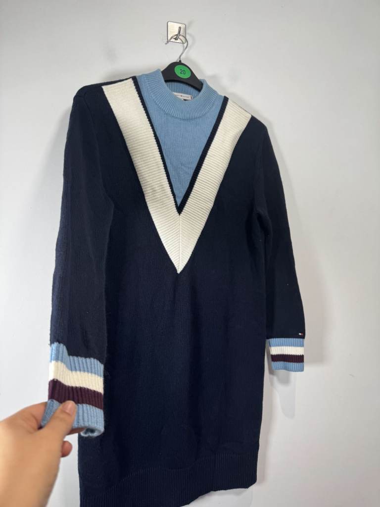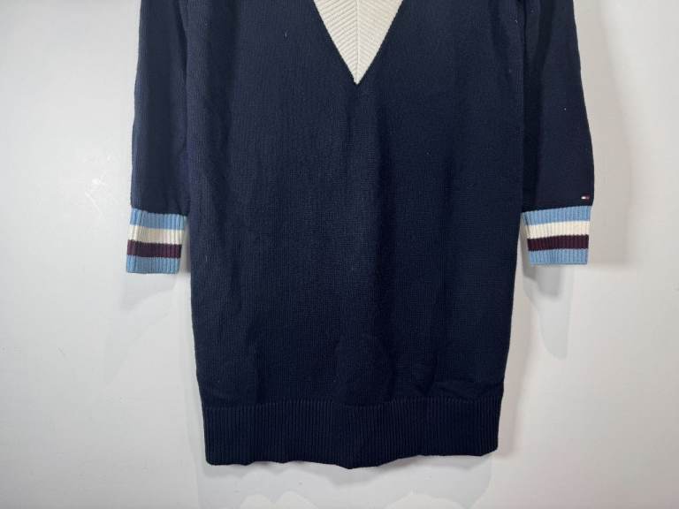 Tommy Hilfiger Raissa Mock-Nk Sweater Dress Women Medium Navy Knitted Wool Mix
