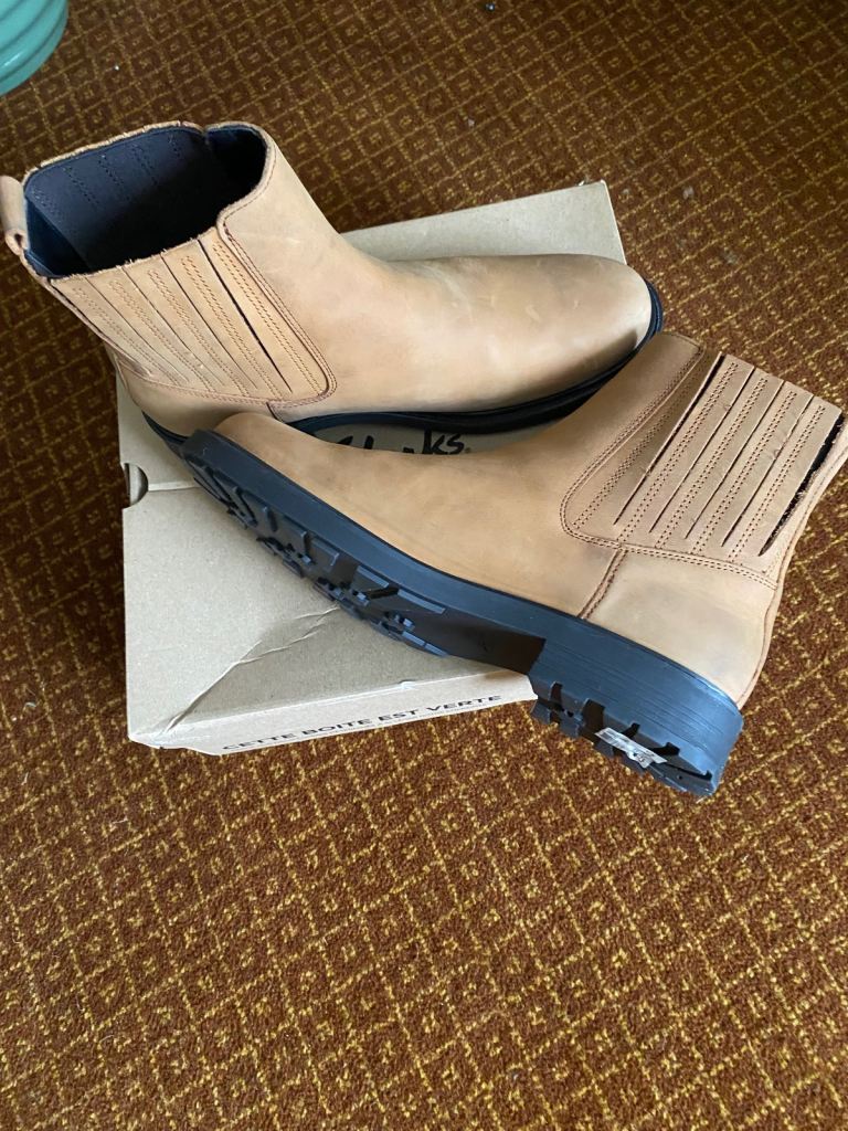 High quality - well made - sand coloured uppers - chunky black rubber soled/heel. Size 8 comfort fit. Elasticised gusset to slip in feet easily. Size 8 women’s,