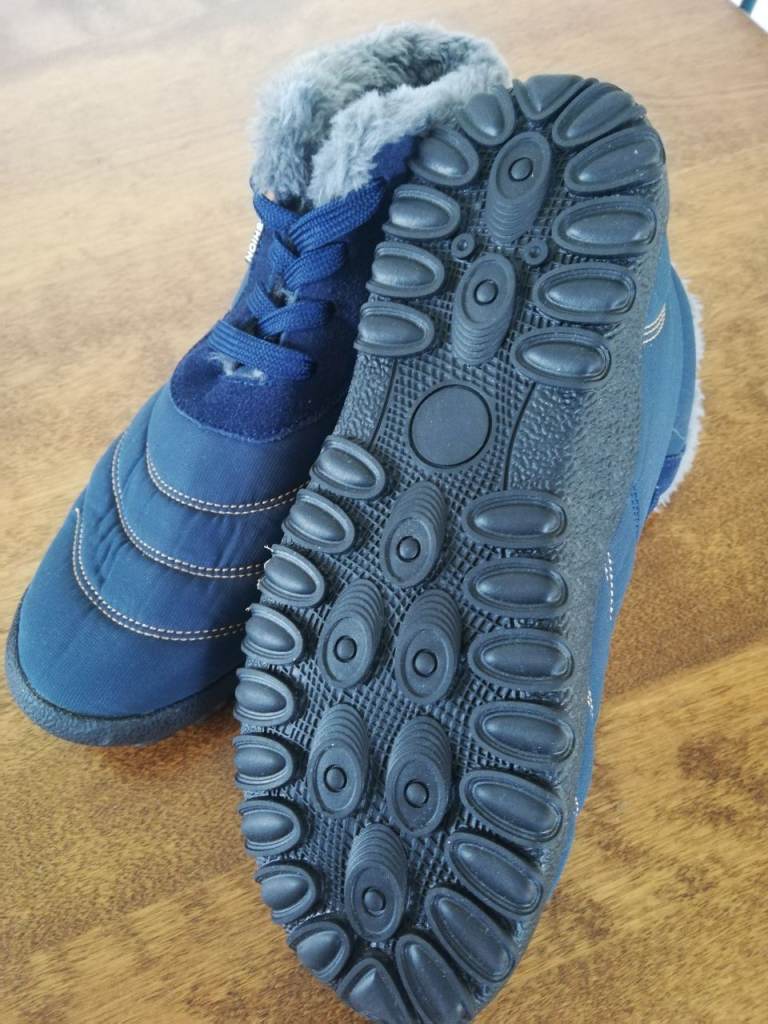 Brand new (bought one size too small.) Really warm, fleece-lined, best barefoot shoes for winter. Navy blue, size 8/9(42) wide fit (great for socks.) Non-slip on any surface. Lightweight. Water resistant. (Magnetic insoles that massage pressure points optional +£5.00.)I wear these the whole winter indoors and out. £30.00. Collection from Guildford or postage and packaging in UK +£5.00. Contact Juliet.