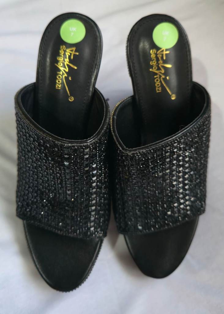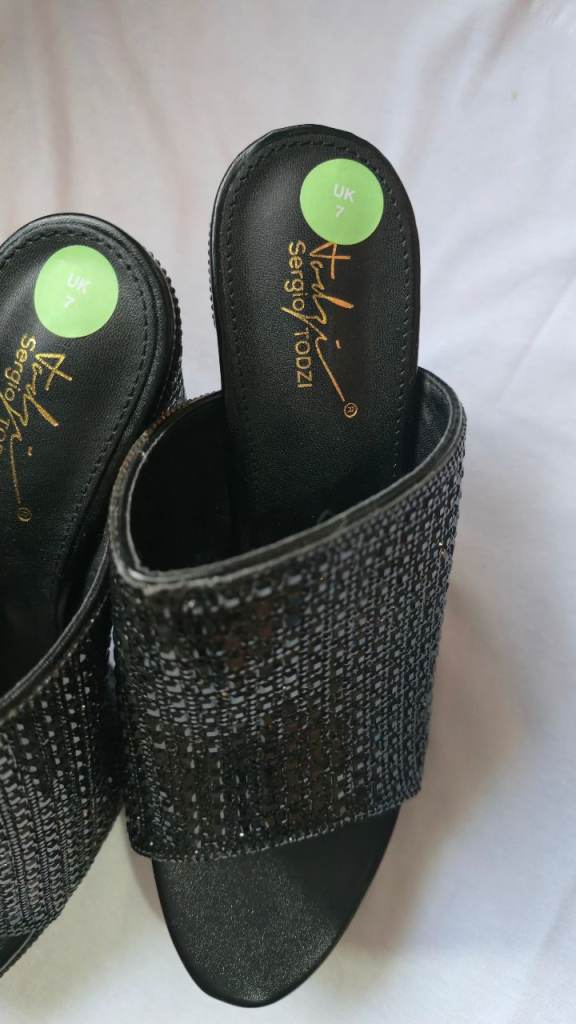 These Sergio Todzi Women's Chunky Heel Mule Sandals in Size 7 are a stylish addition to any wardrobe. The slip-on design and chunky heel make them perfect for summer outings, while the synthetic material ensures durability. The standard shoe width provides comfort and the sleek black colour adds versatility to any outfit. Whether you're dressing up or down, these never-worn sandals are sure to make a statement.