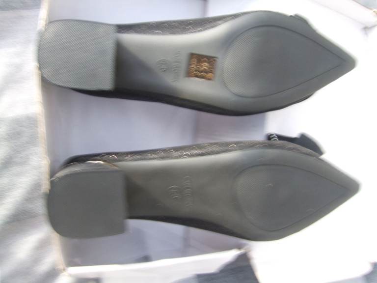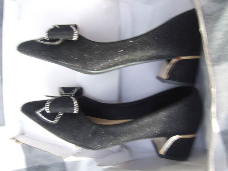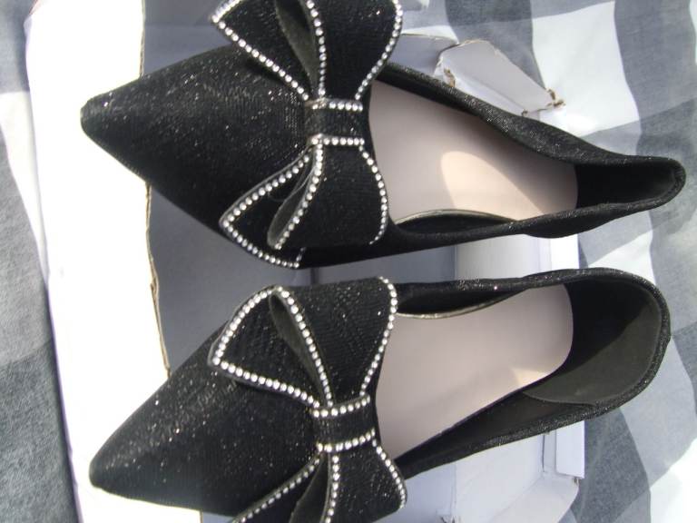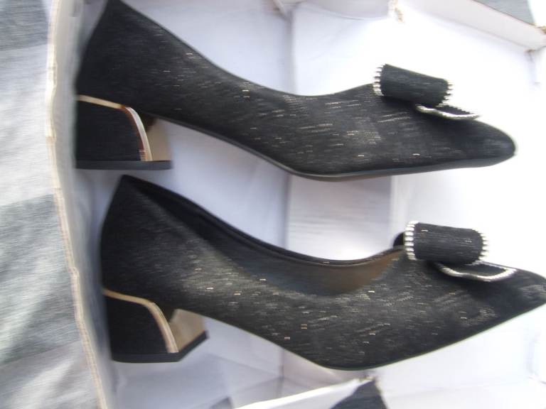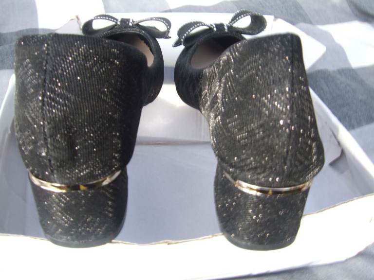 Woman's fashion shoe with heel, size 9 (43) in New condition, Black with silver glitter. They come with box, never been worn. Bargain, £15, collection from Whitstable.