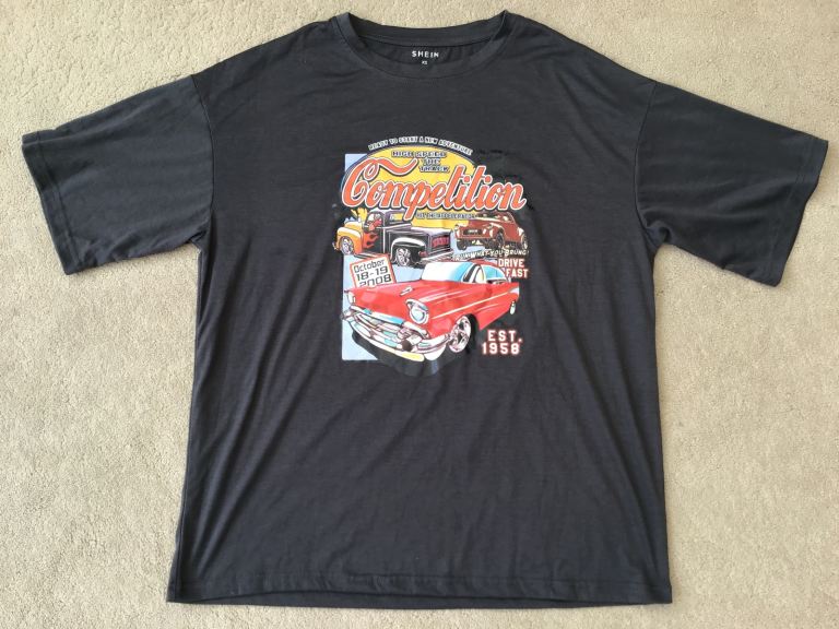 ‘SHEIN’ Women’s Vintage Car Print Oversized Tee, Size XS