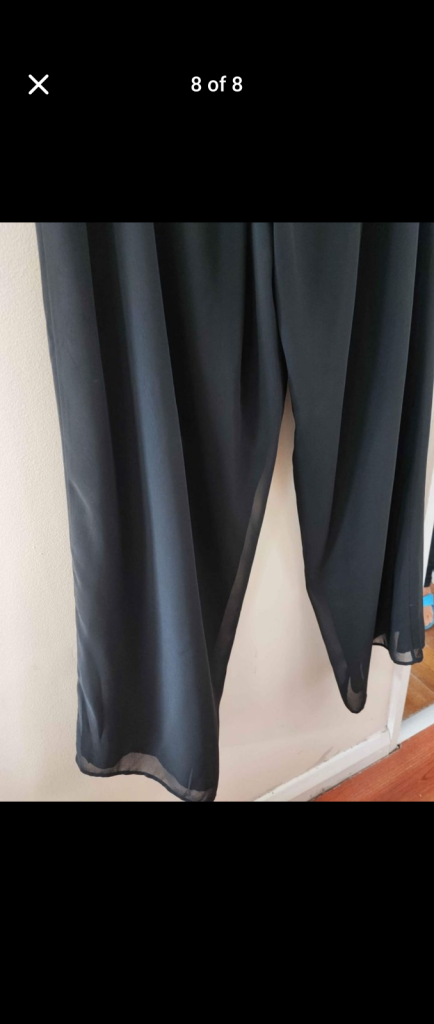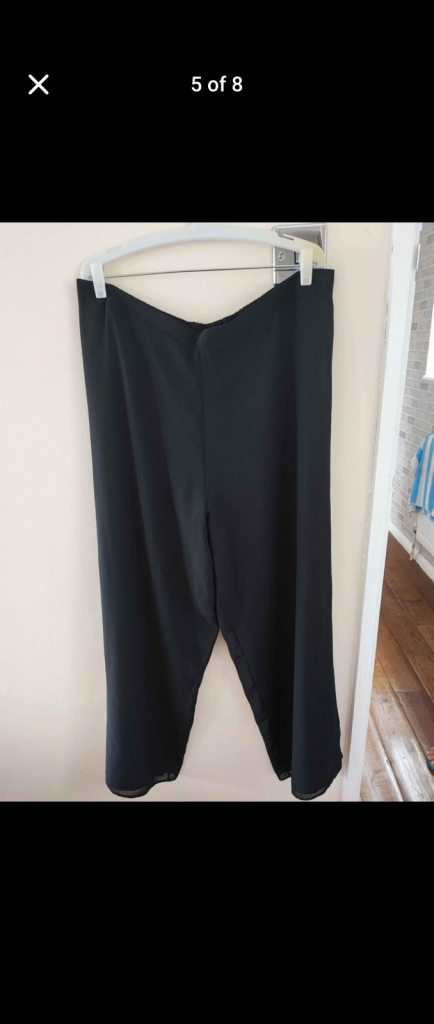 Like new condition used once. Blouse, top and trouser included. Size 20/22 black.