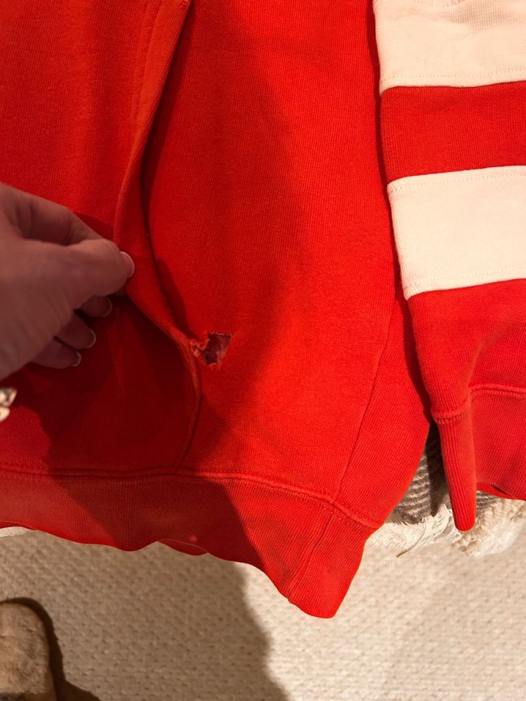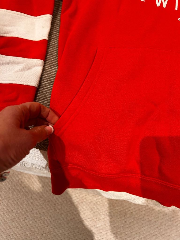 Jack Wills Hoodie, S, red & white, pet & smoke free slight rip in pocket hence price