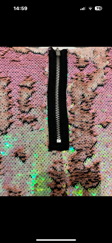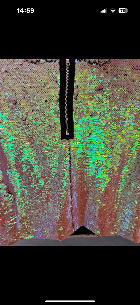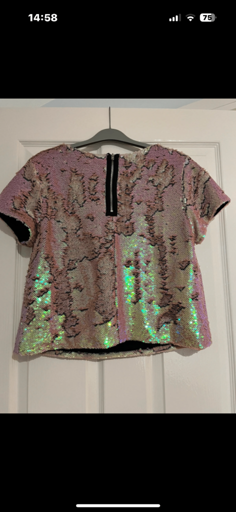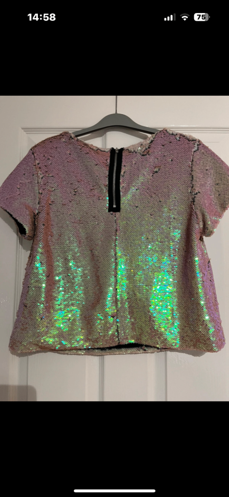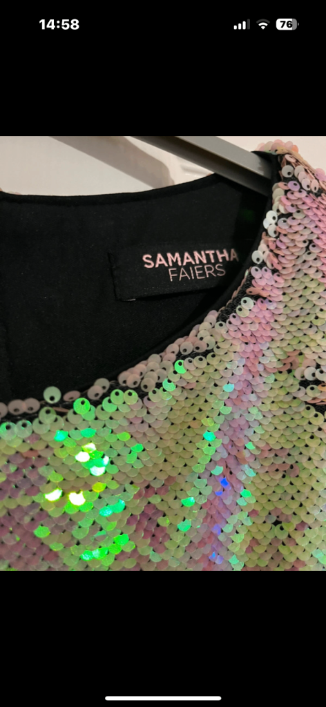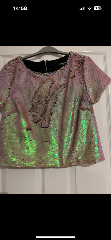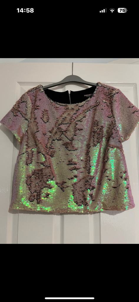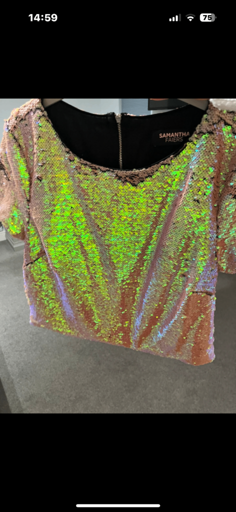 Sequinned top by Samantha Fairers. Generous size 10 box style. Worn once. Iridescent gold/nude sequins can form different patterns by using fingers. Smoke and pet free home.