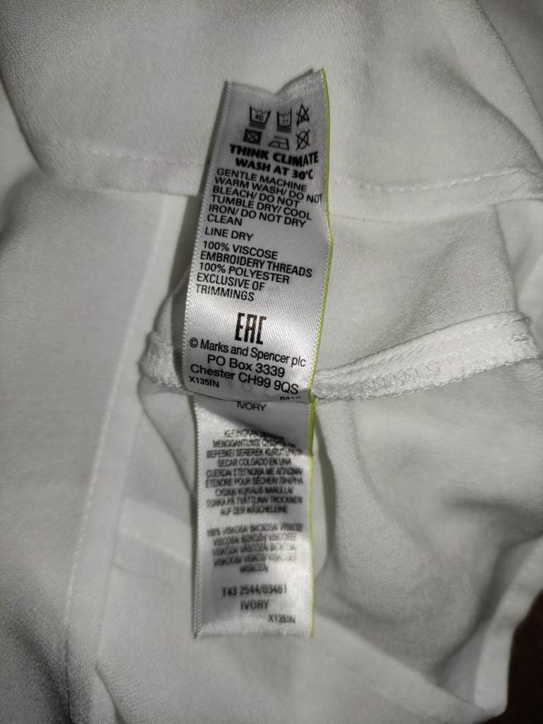 Marks & Spencer White Crinkle viscose long sleeved Top size 14