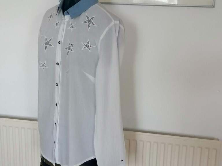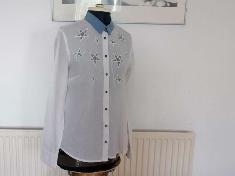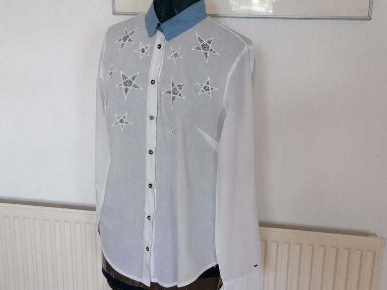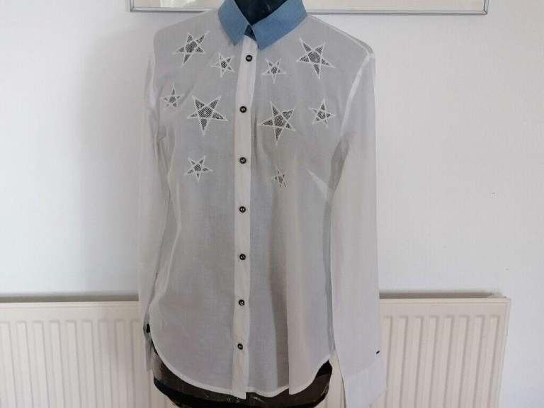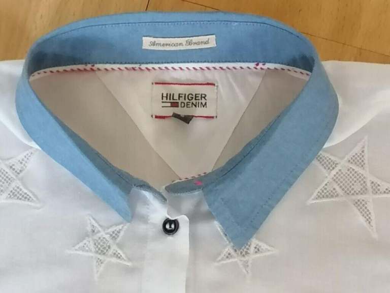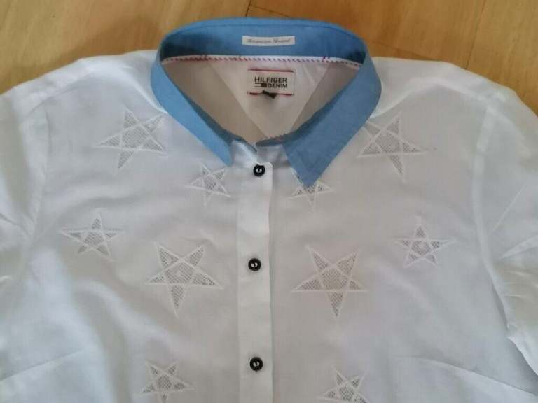 Lovely authentic designer TOMMY HILFIGER Contrast Ladies Cotton Shirt. Features small logo on cuff. Contrast stitched texture pattern at front..Contrast collar colour. Sold in immaculate perfect excellent condition. Looks like new never worn.